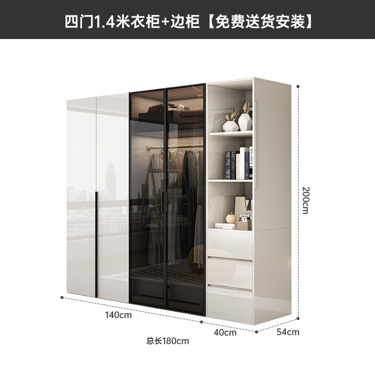• 4도어 1.4m 옷장 + 사이드 캐비닛(두꺼운 후면 패널)