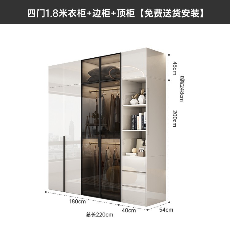 • 4도어 1.8m 옷장 + 측면 캐비닛 + 상단 캐비닛(두꺼운 후면 패널)