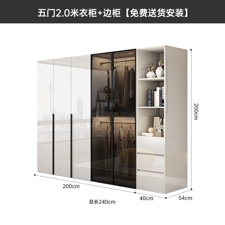• 5도어 2.0m 옷장 + 사이드 캐비닛(두꺼운 후면 패널)