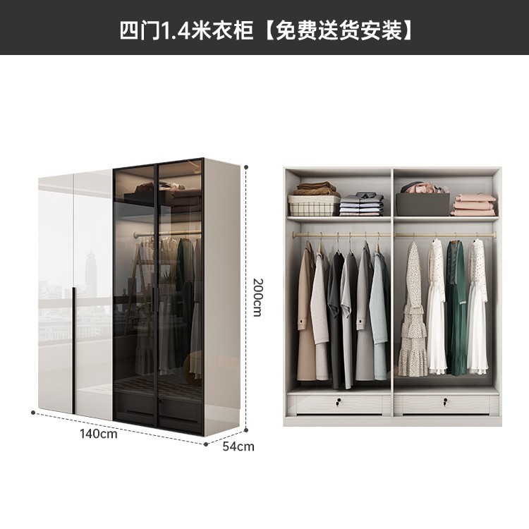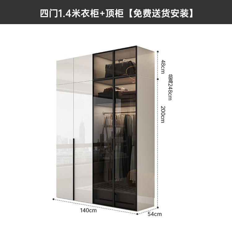 • 4도어 1.4m 옷장 + 상단 캐비닛(두꺼운 후면 패널)