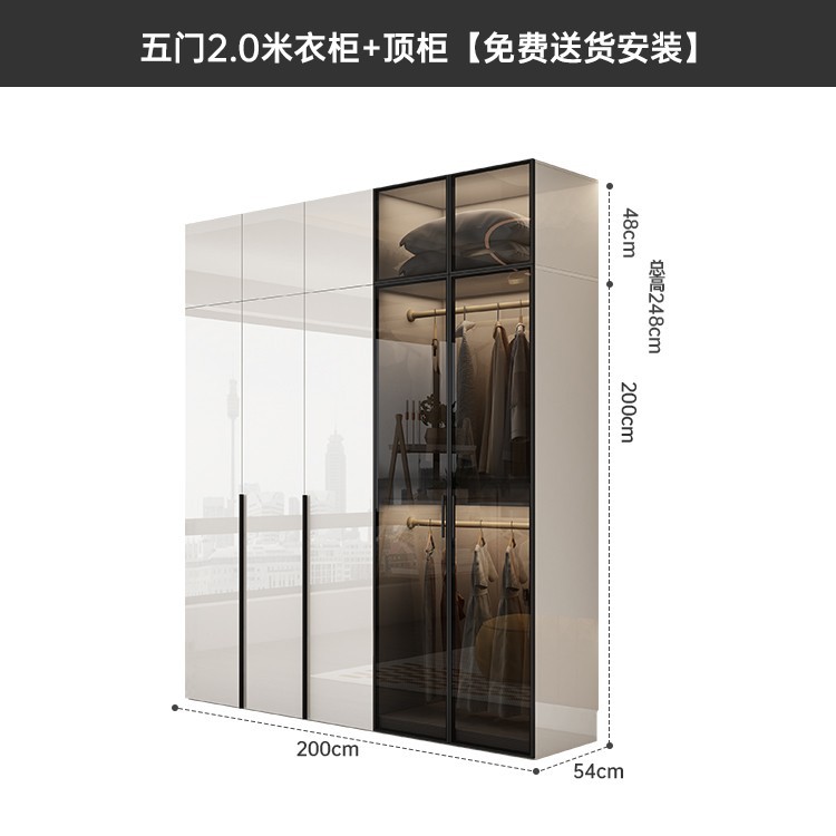 • 5도어 2.0m 옷장 + 상단 캐비닛(두꺼운 후면 패널)