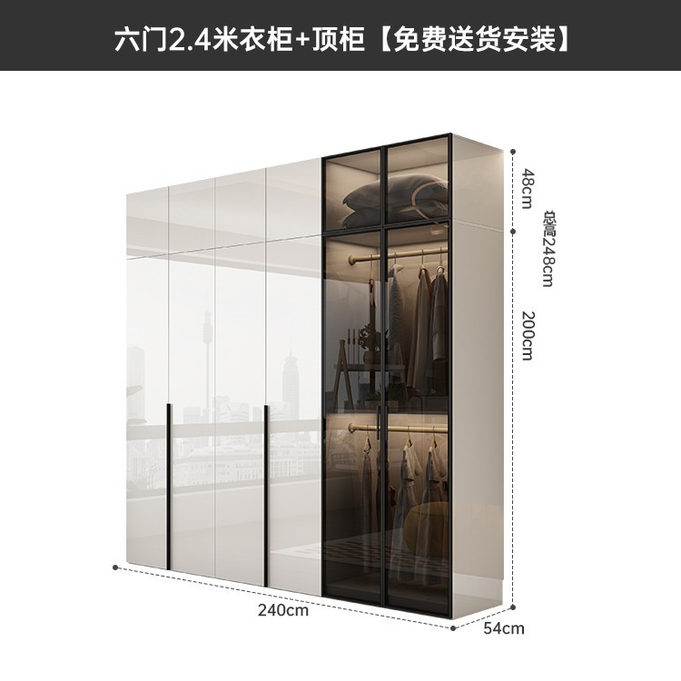 • 6도어 2.4m 옷장 + 상단 캐비닛(두꺼운 후면 패널)