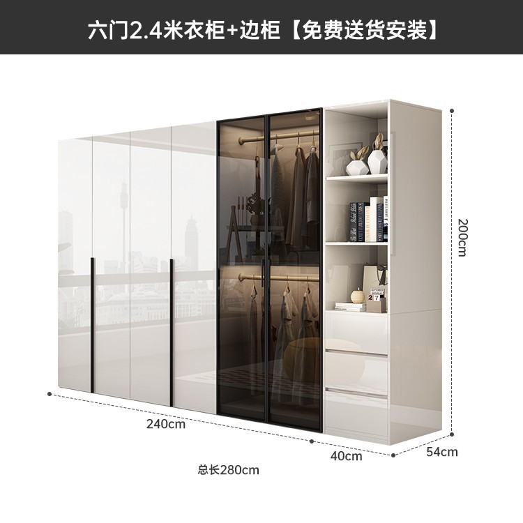 • 6도어 2.4m 옷장 + 측면 캐비닛 + 상단 캐비닛(두꺼운 후면 패널)
