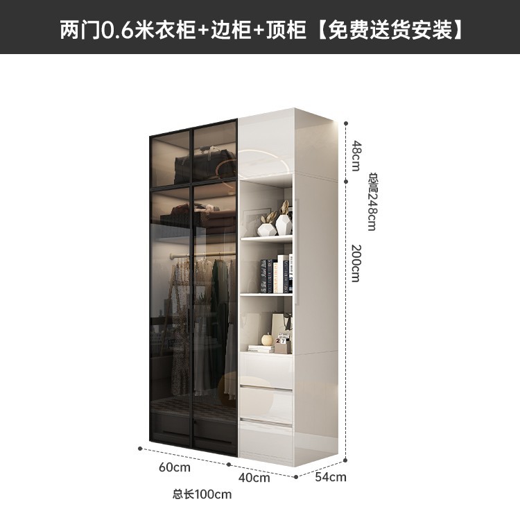 • 2도어 0.6m 옷장 + 사이드 캐비닛 + 상단 캐비닛(두꺼운 후면 패널)