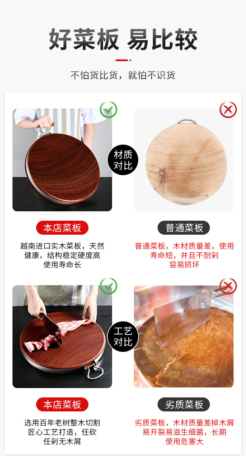 철 나무 도마 도마 도마 단단한 나무 가정용 칼 보드 큰 야채 부두 전체 나무 둥근 도마 두꺼운 패널 배치 공장스토어 가기