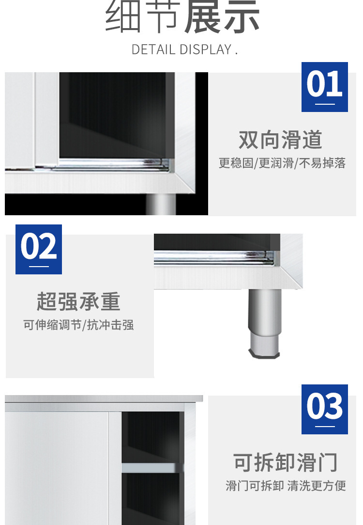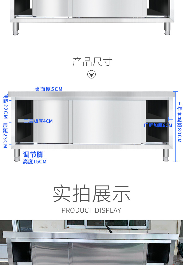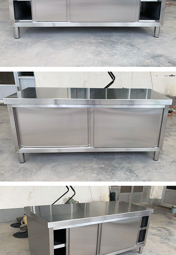 304 스테인레스 스틸 슬라이딩 도어 작업대 주방 상업 재생 테이블 콘솔 스토리지 캐비닛 커팅 캐비닛 베이킹 스페셜