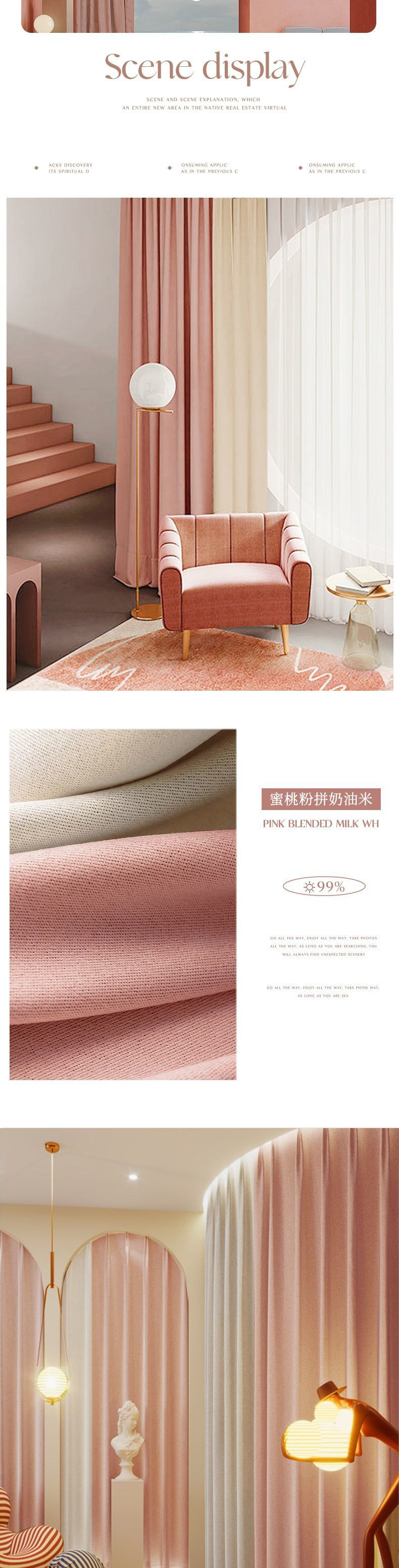 • 안개 커튼 클라우드 커튼 - 피치 핑크 후크 스타일