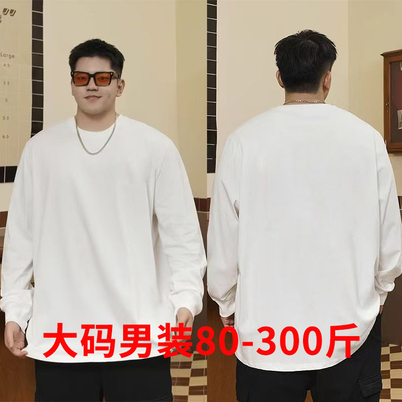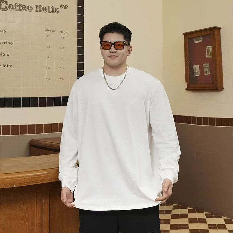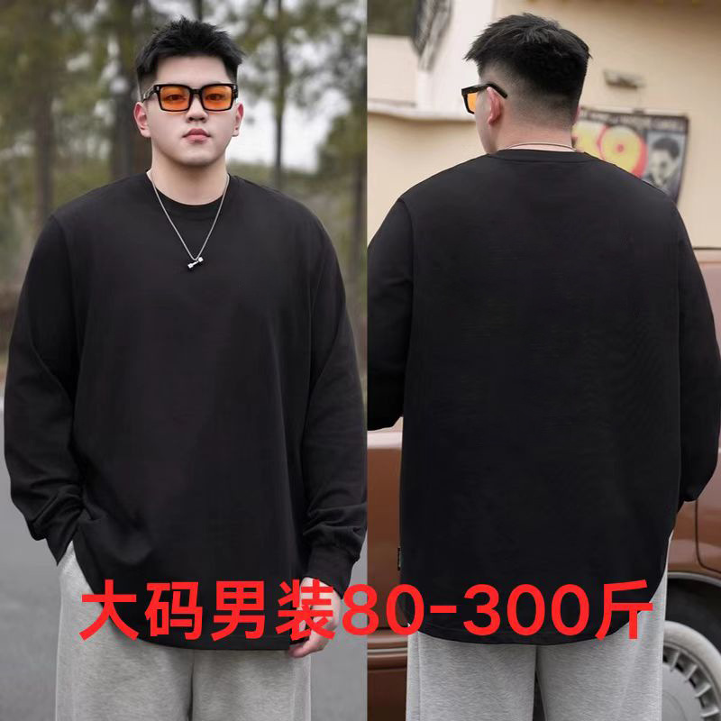 50.00 kg-150.00 kg 플러스 사이즈 봄과 가을 플러스 사이즈 면 내부 긴팔 티셔츠 슬림 핏 루즈 탑스토어 가기