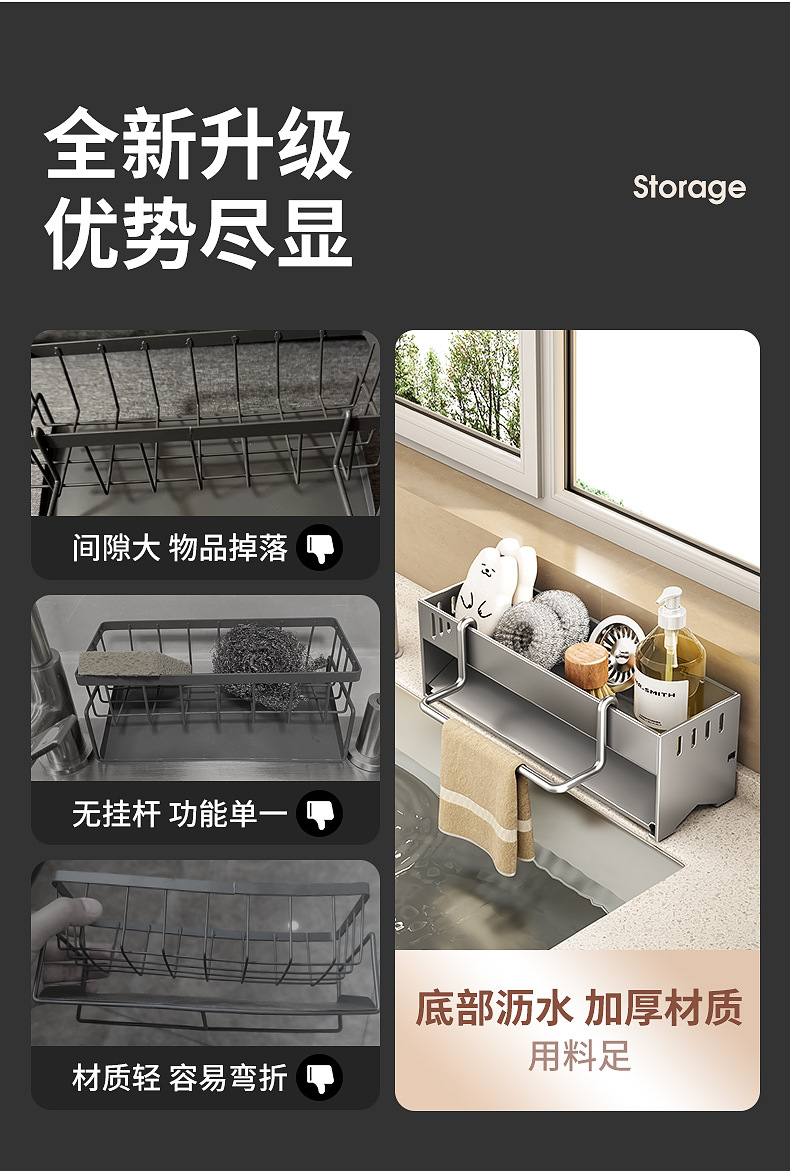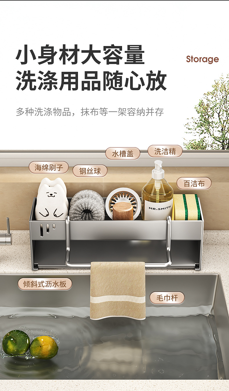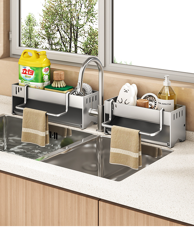 스테인레스 스틸 스펀지 랙 가정용 싱크대 헝겊 배수 랙 주방 다기능 스크러링 패드 스틸 와이어 볼 스토리지 랙