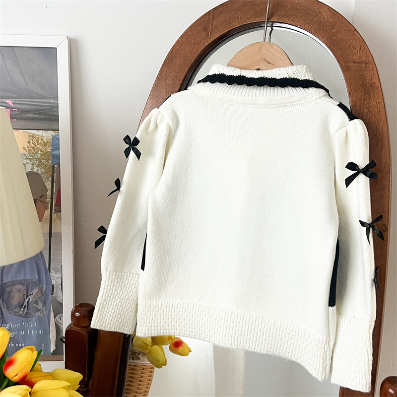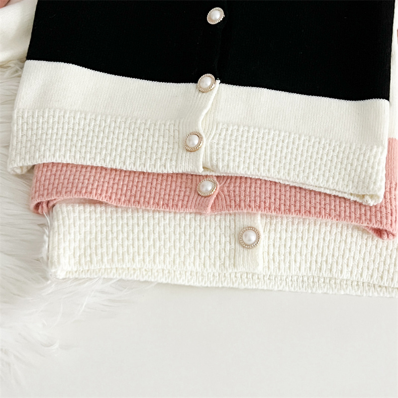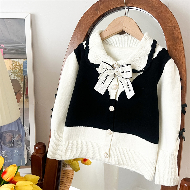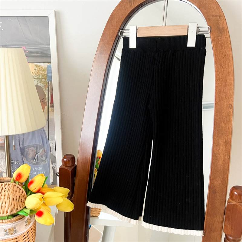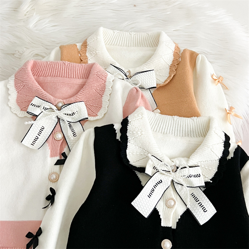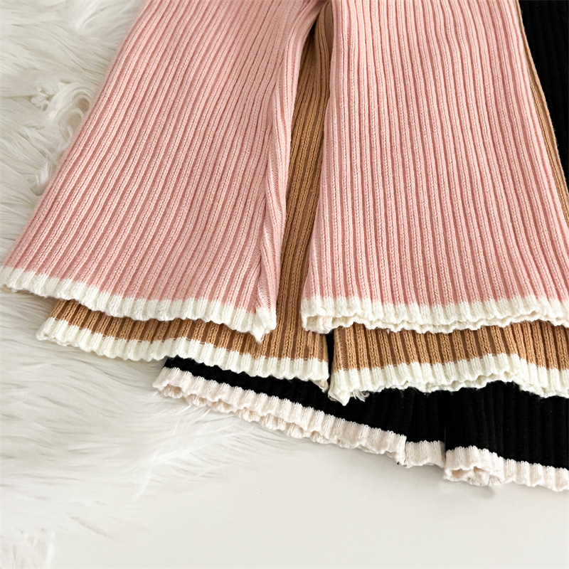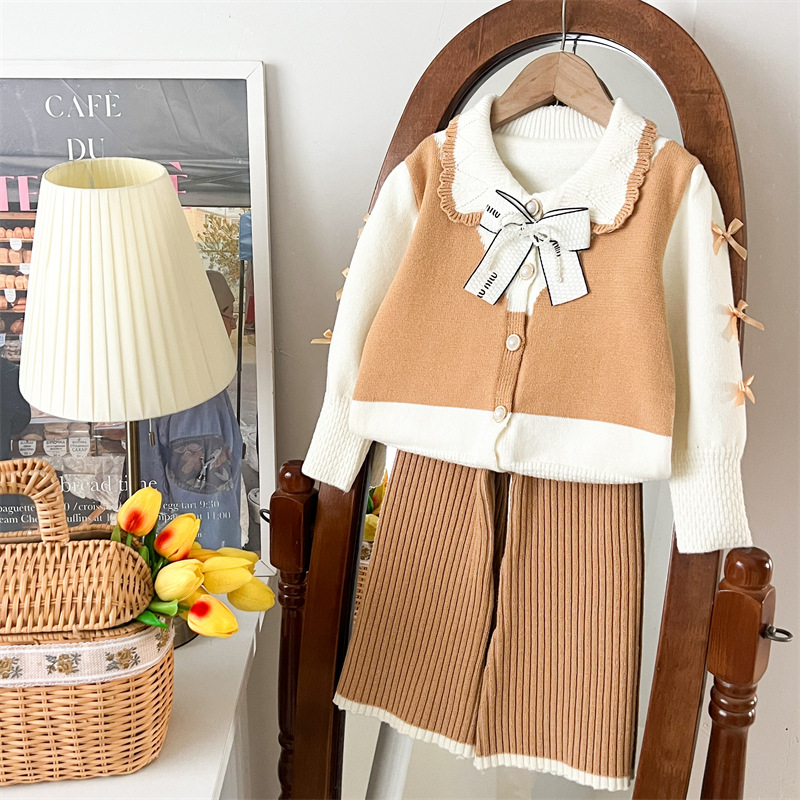 국경 간 폭발 소녀 스웨터 세트 2024 가을과 겨울 새로운 가짜 두 카디건 울 바지 외국 스타일 투피스 세트