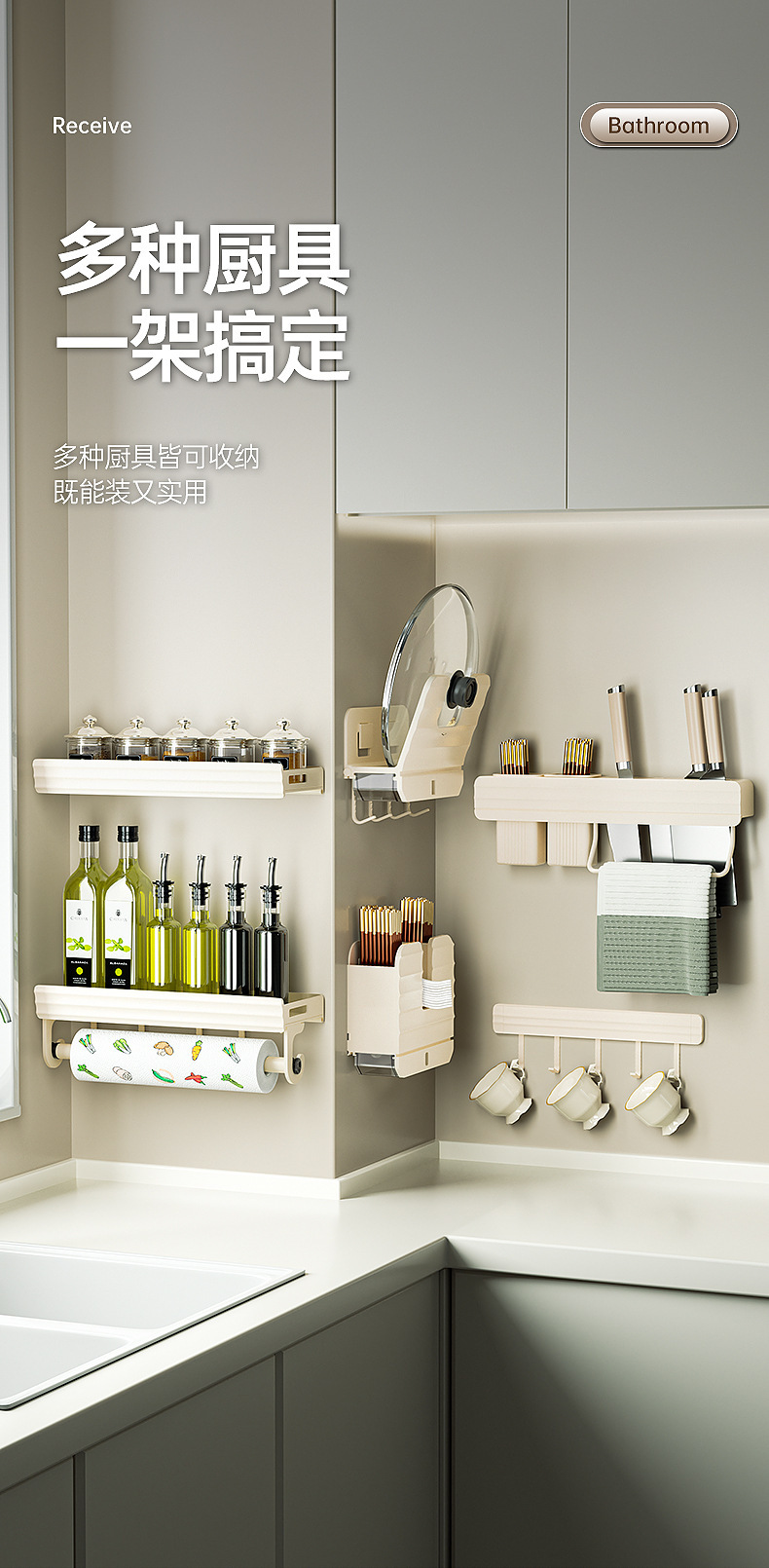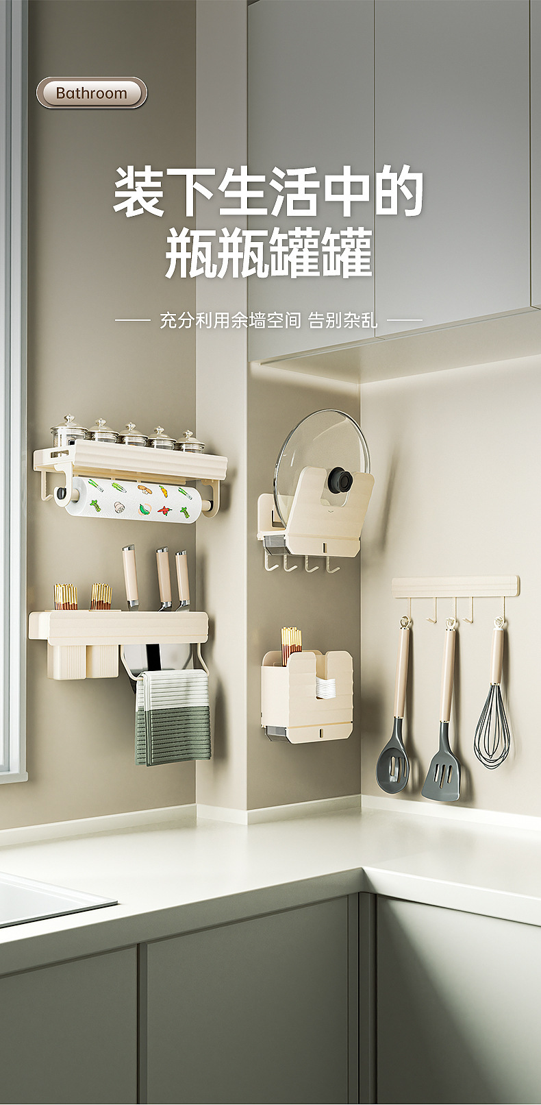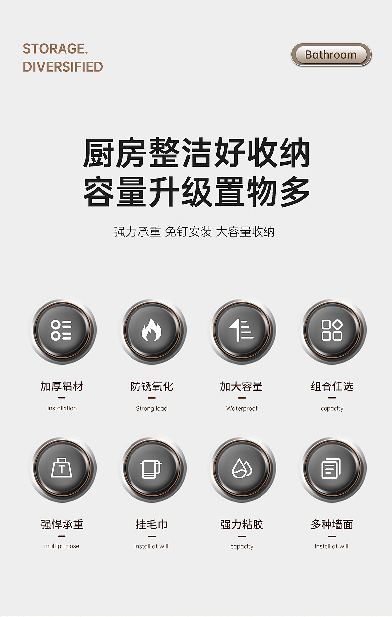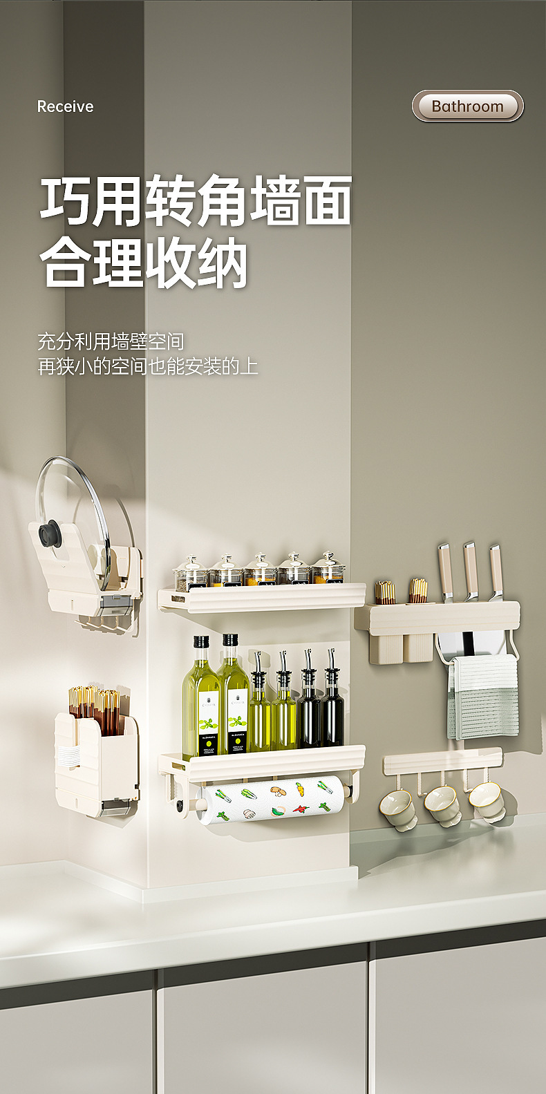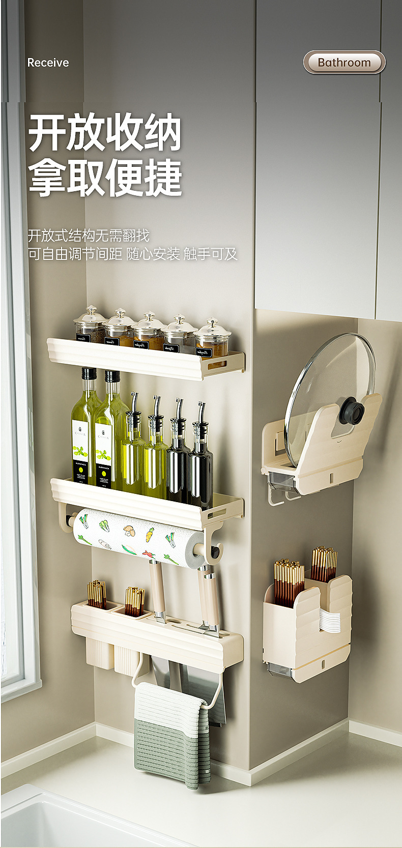 구멍이 없는 수납선반, 가정용 조미료 및 용품, 심플하고 모던한 스타일의 주방 수납 및 수납용품스토어 가기