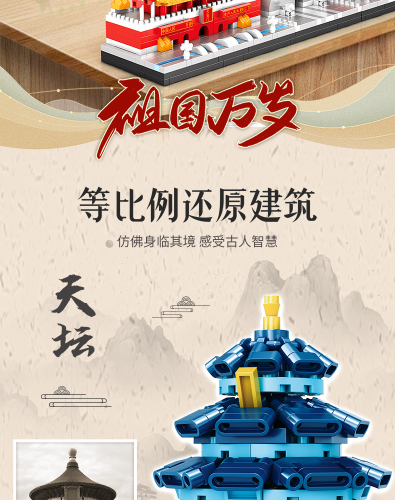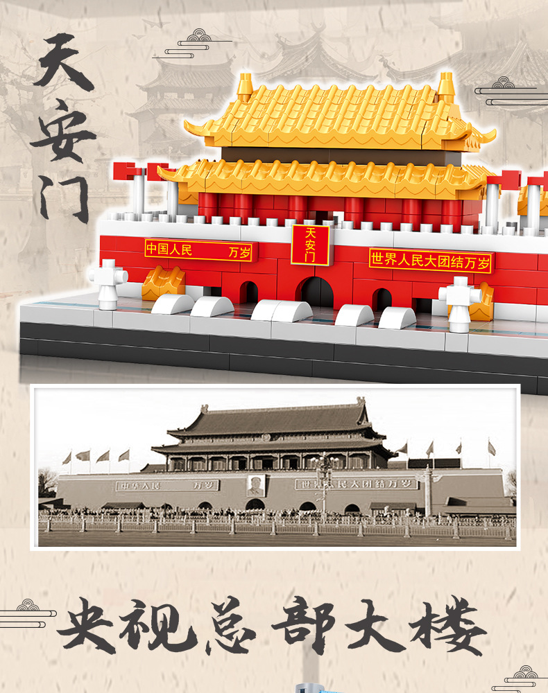 Yuantai 빌딩 블록 천안문 어린이 퍼즐 마이크로 입자 레고 보이즈와 호환 베이징 랜드 마크 빌딩 장난감스토어 가기