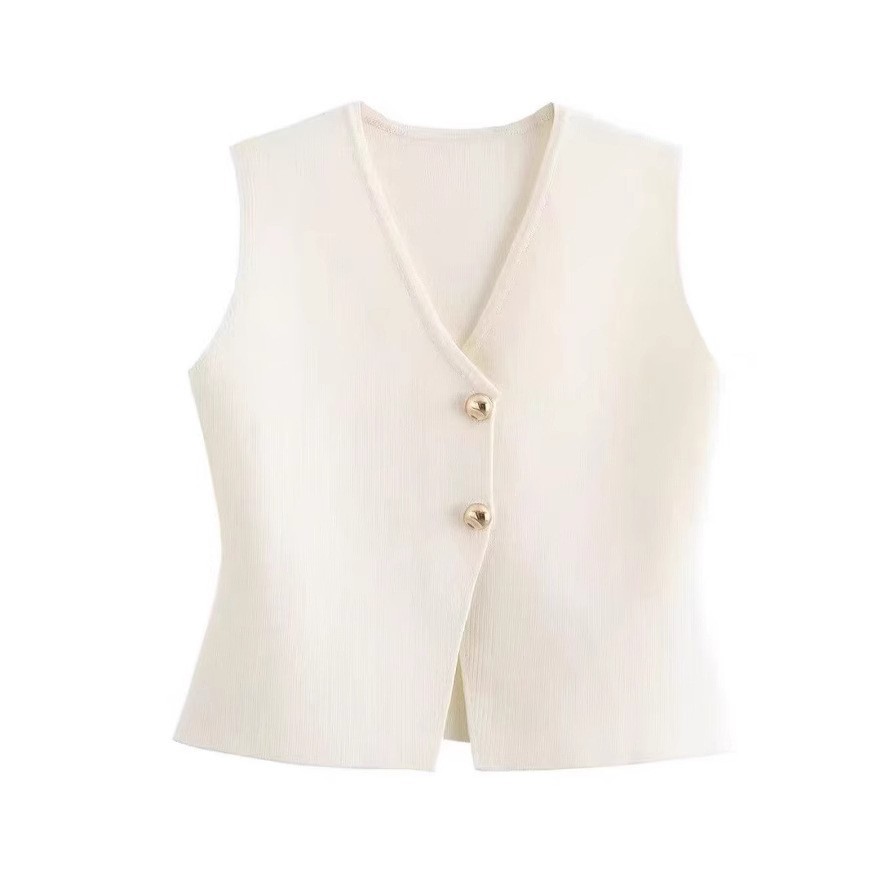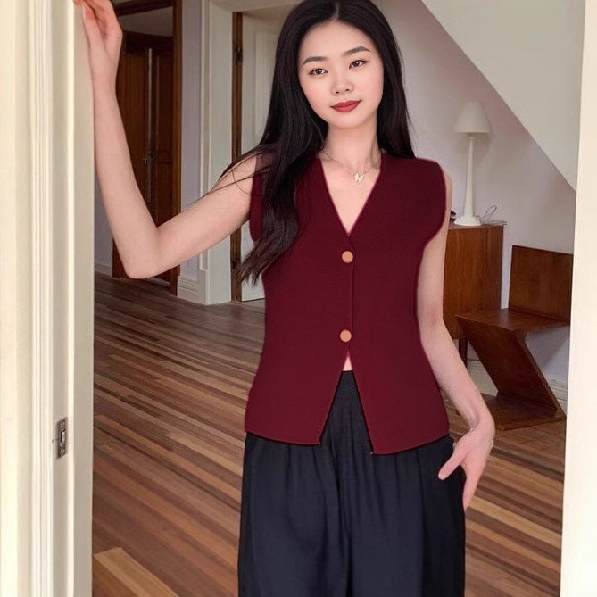 여름 새로운 슬림 핏 슬리밍 민소매 스플릿 조끼 최고 여성 프랑스 스타일 짧은 우아한 캐주얼 조끼 니트웨어