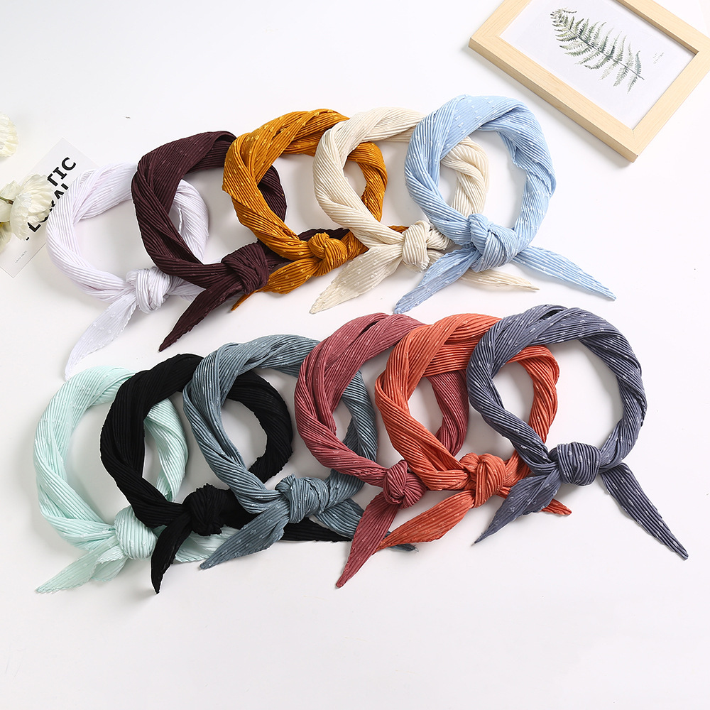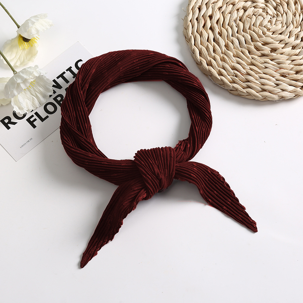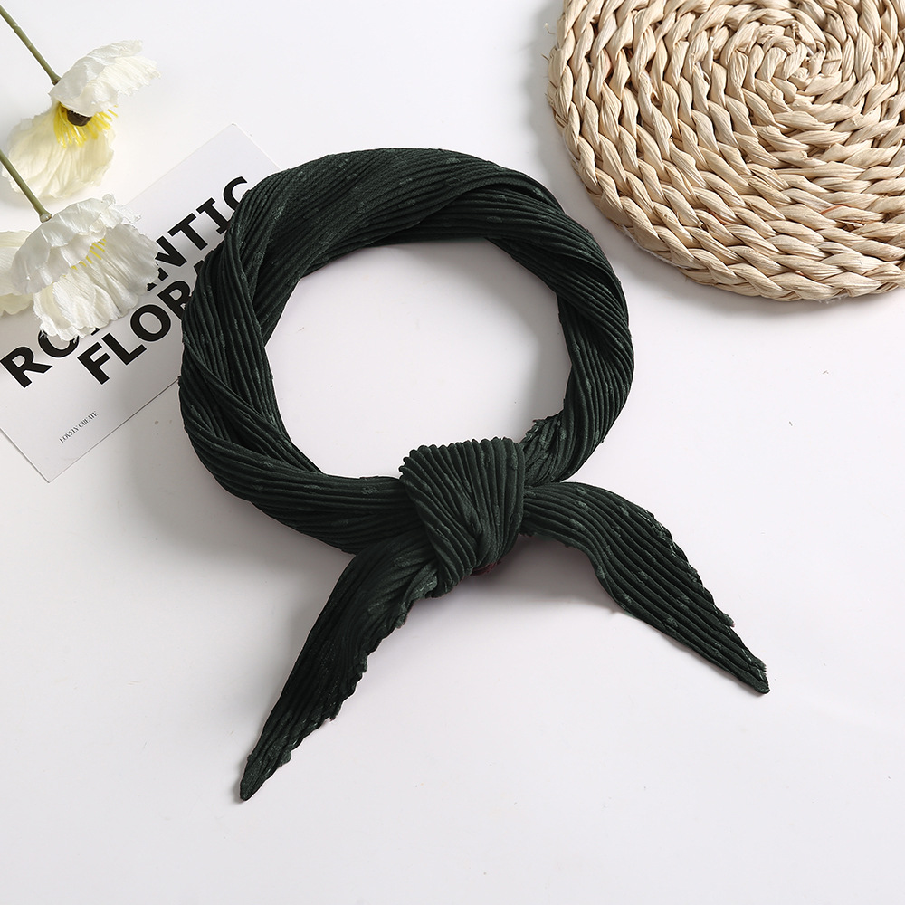 국경 패션 한국 스타일 뉴 웨이브 도트 쉬폰 작은 광장 스카프 봄과 가을 여성의 우아한 흑백 주름 조커 작은 실크 스카프