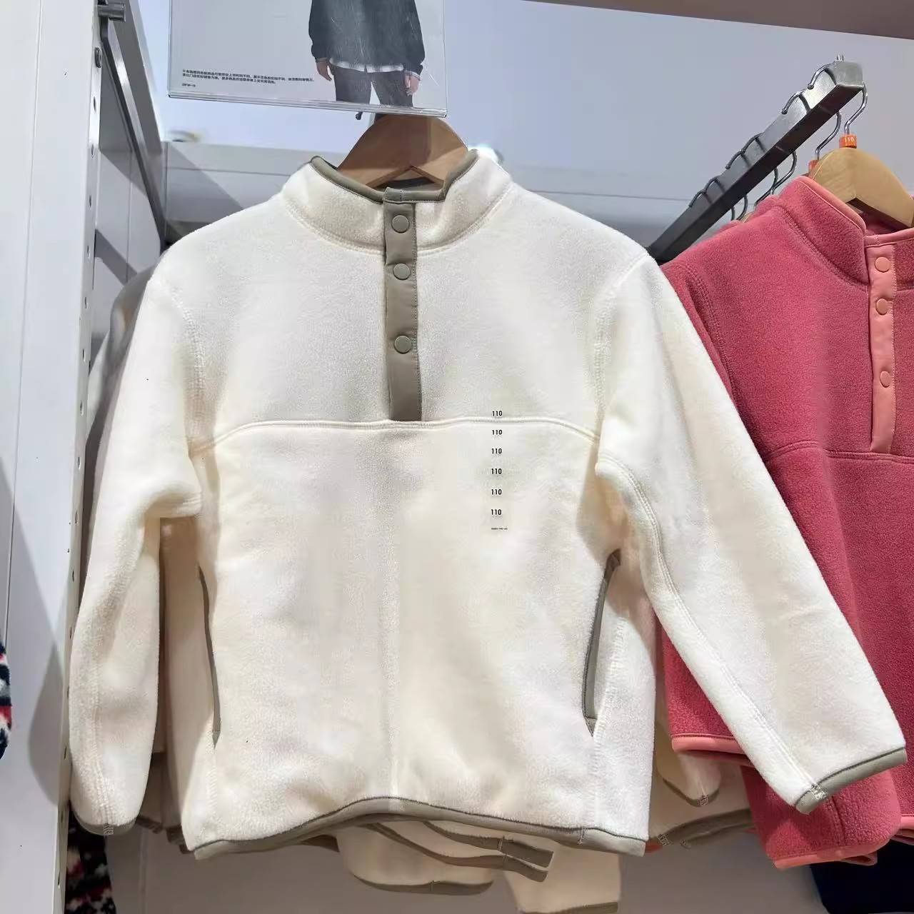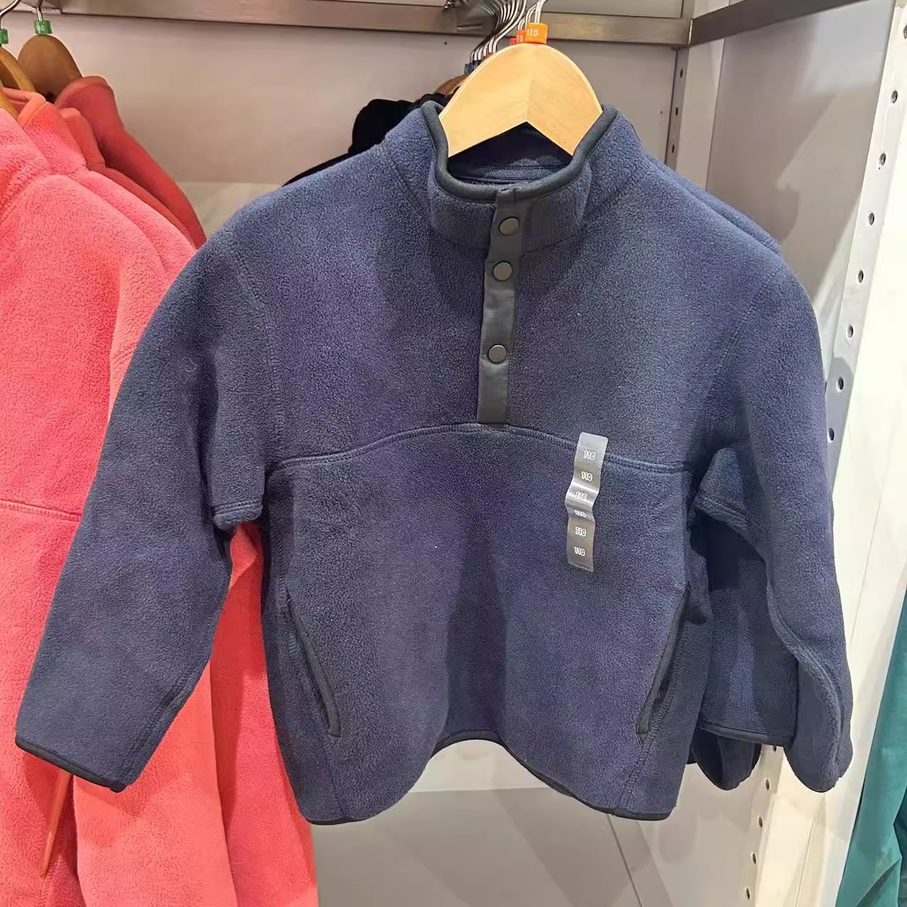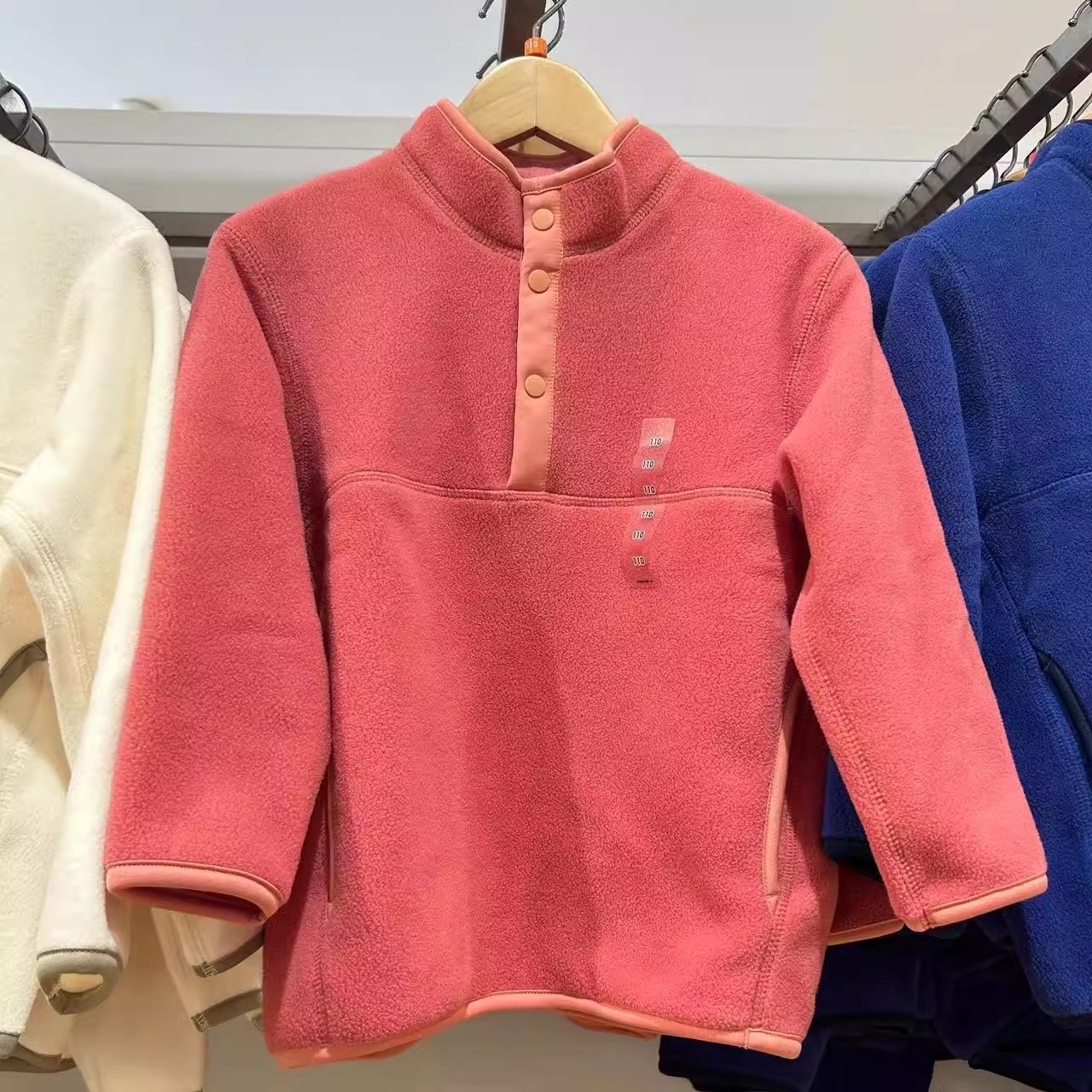 일본 아동복/소년/소녀 폴라 플리스 버튼 하프 오픈 칼라 풀오버 (긴 소매 가을과 겨울) 460186