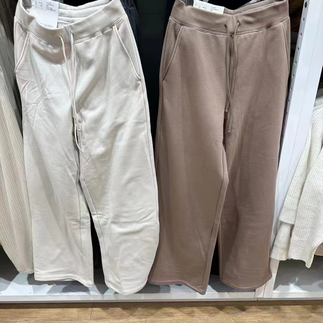 일본 여성의 가을과 겨울 혼합 Elasticite 바지 양털 끈 캐주얼 따뜻한 바지 넓은 다리 바지 473242스토어 가기