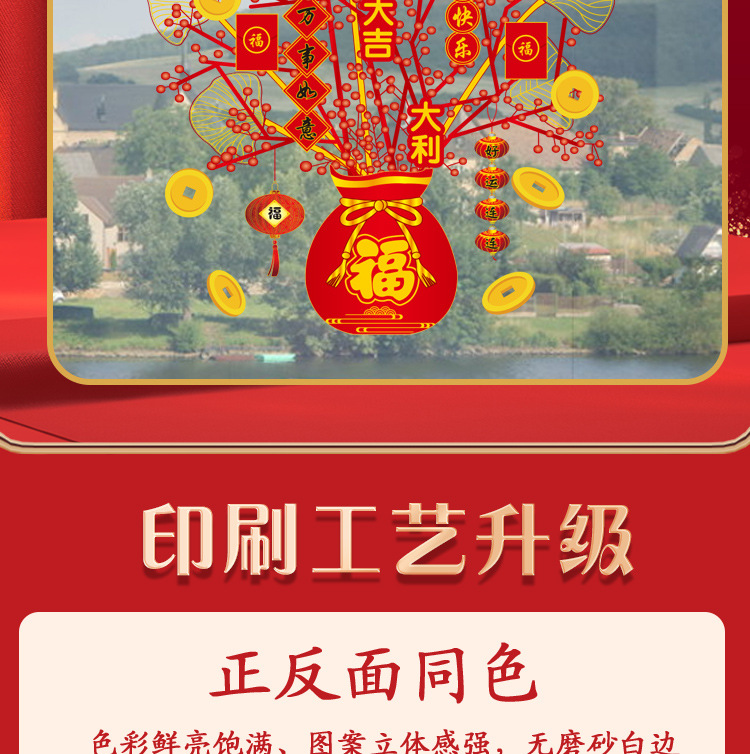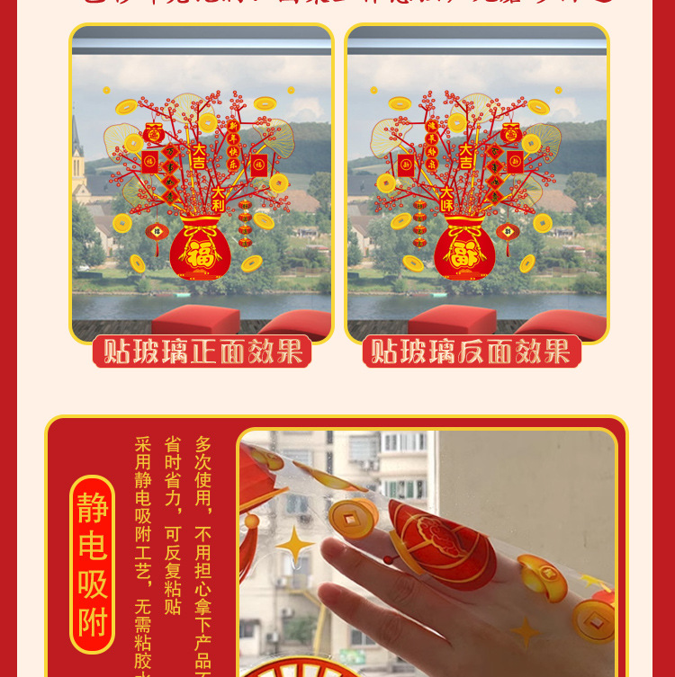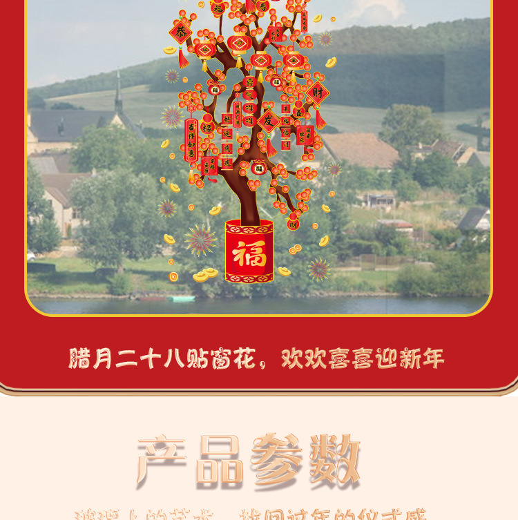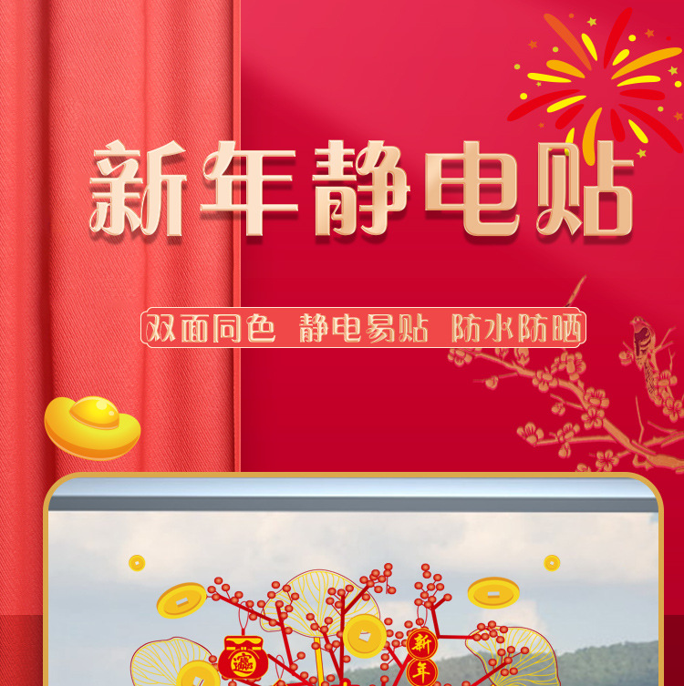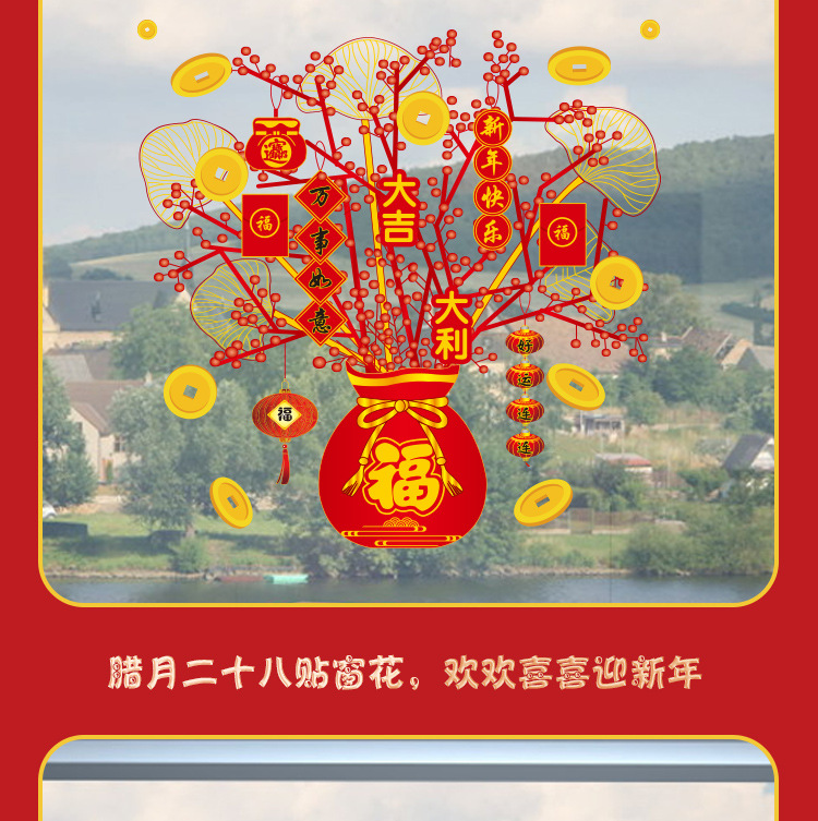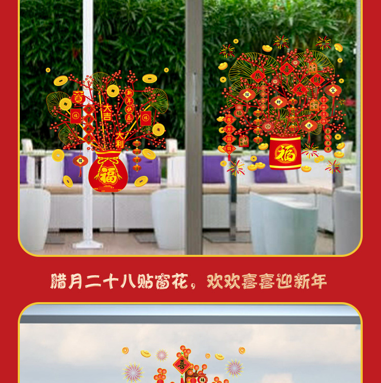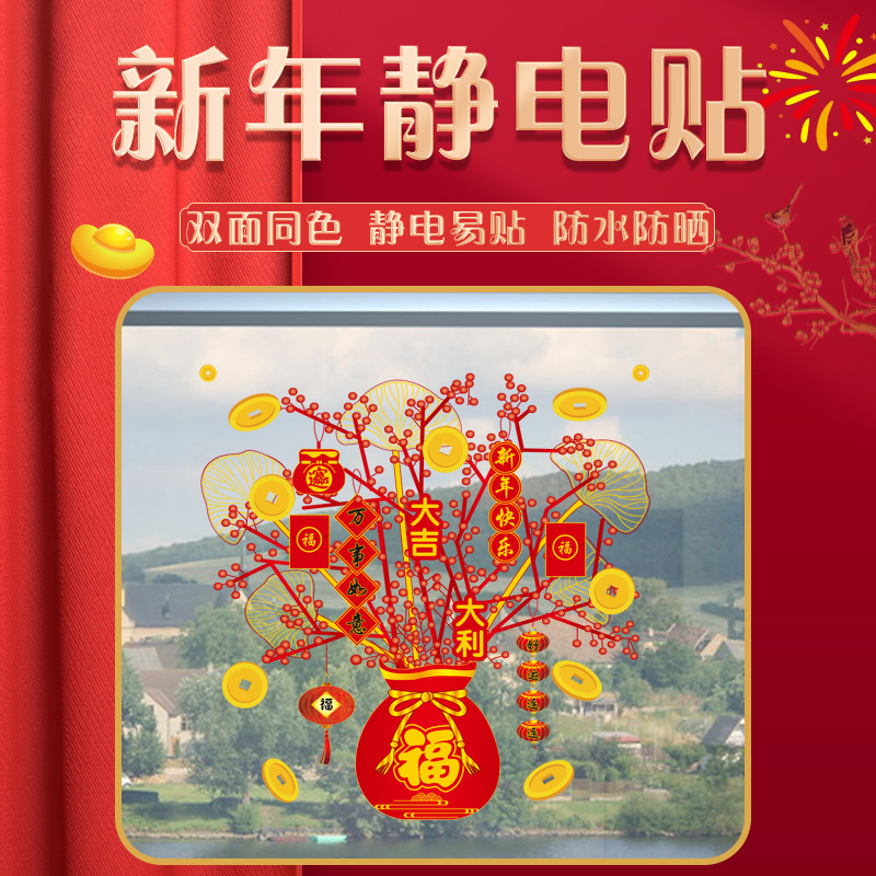 새해 포춘 나무 유리 문 스티커 정전기 스티커 봄 축제 새해 드래곤 년 거실 창 스티커 창 스티커 축제