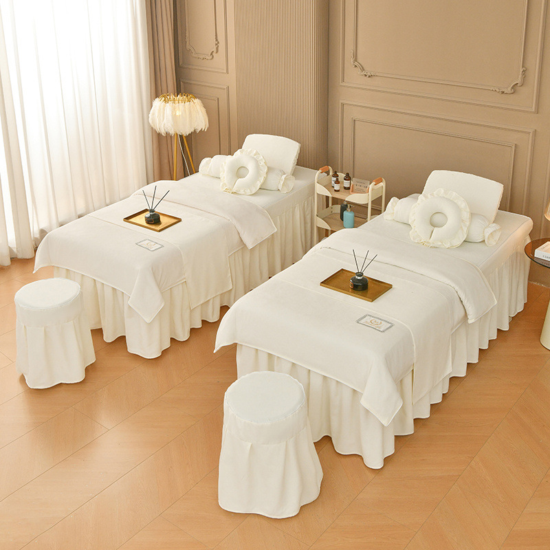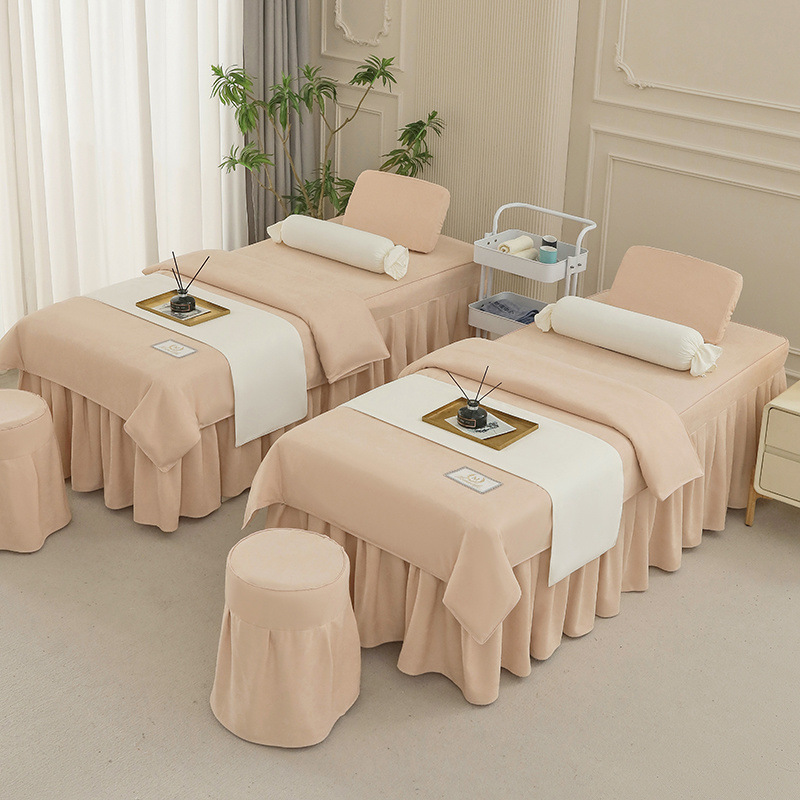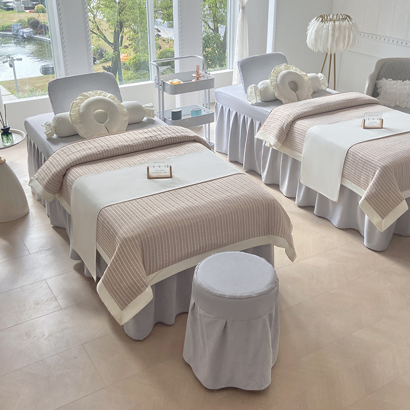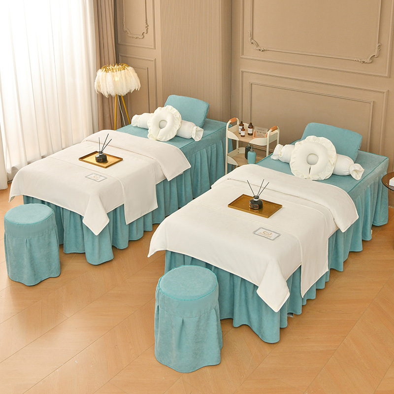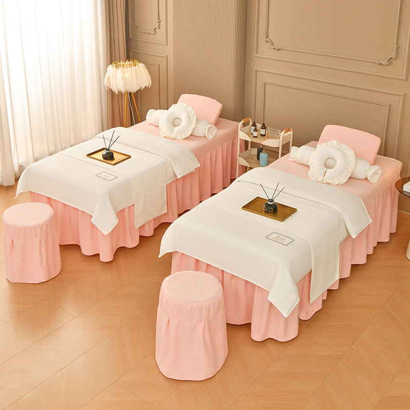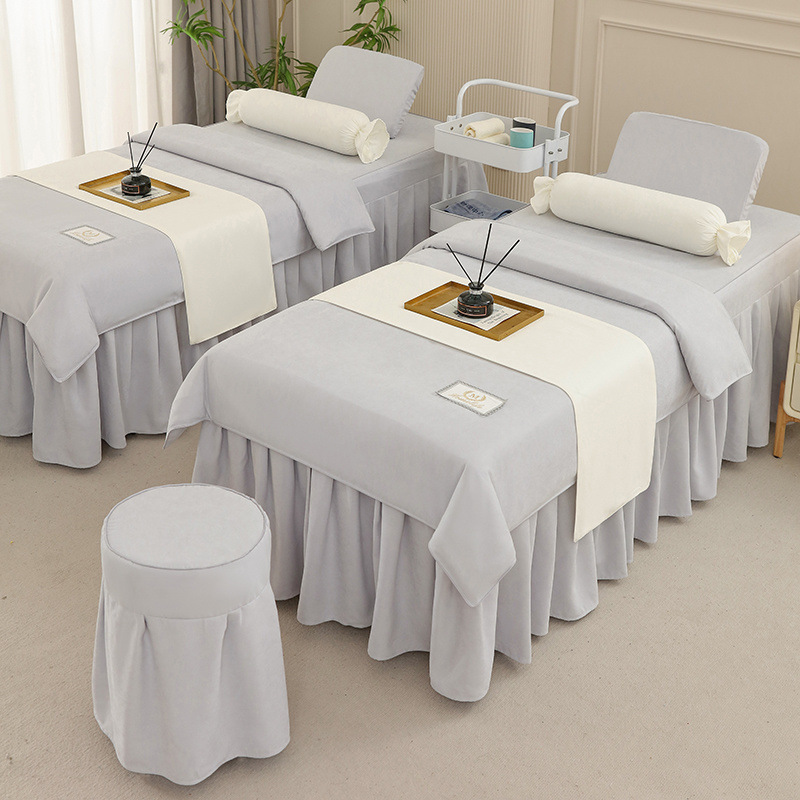 2025 하이 엔드 뷰티 침대보 4 피스 세트 마사지 물리 치료 샴푸 심플 침대를위한 새로운 스타일 뷰티 살롱 특별 침대 시트스토어 가기