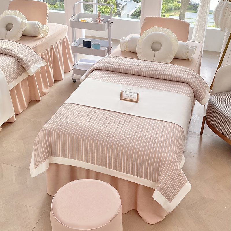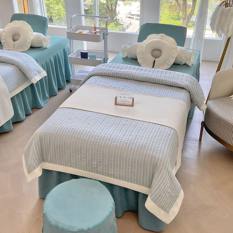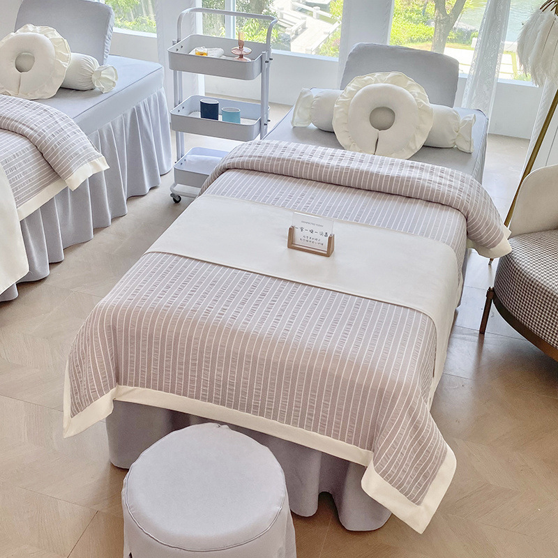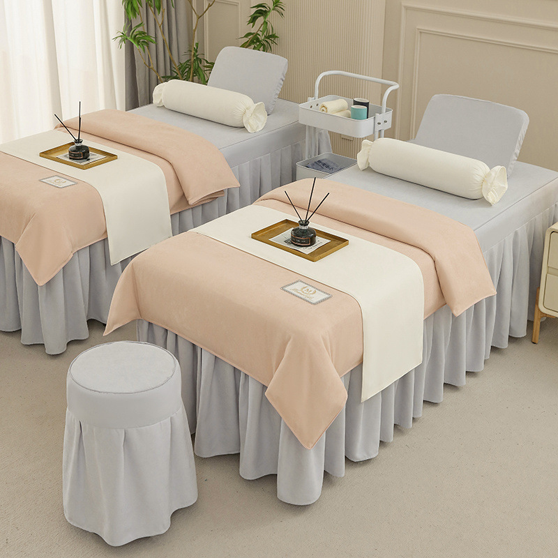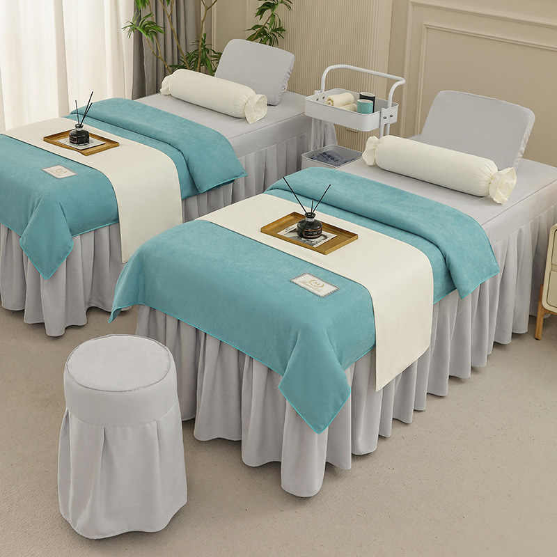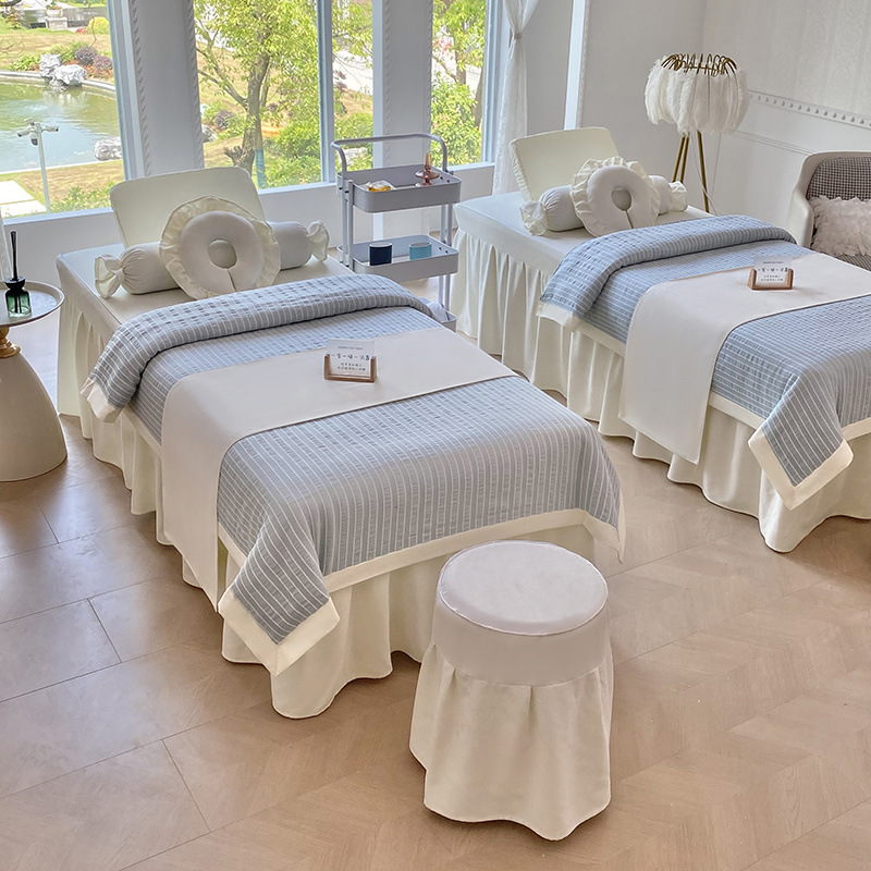2025 하이 엔드 뷰티 침대보 4 피스 세트 마사지 물리 치료 샴푸 심플 침대를위한 새로운 스타일 뷰티 살롱 특별 침대 시트스토어 가기