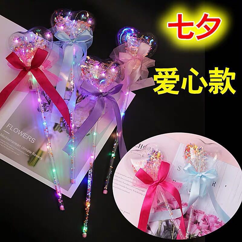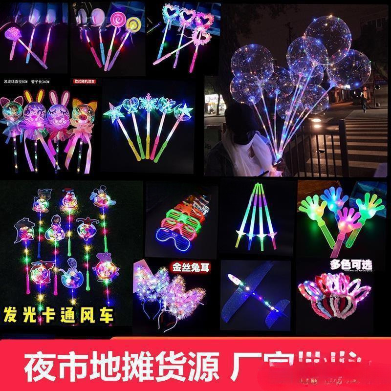 봄과 여름 어린이 장난감, 축제 장소, 빛나는 요정 지팡이, 야시장, 공원 광장, 밤에 장식스토어 가기