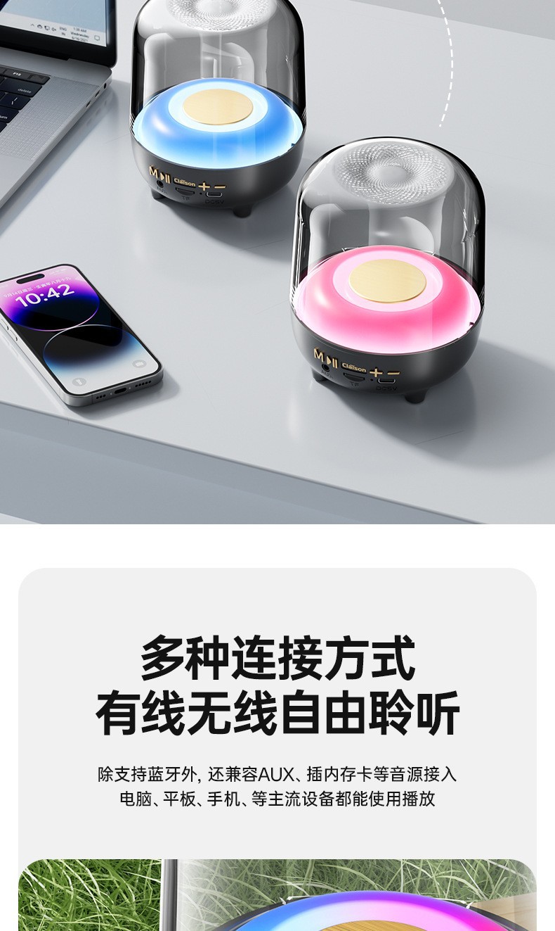 국경을 넘는 휴대용 블루투스 스피커 TWS 시리즈 서브우퍼 투명 스피커 가정용 소형 하만 글라스 스피커스토어 가기