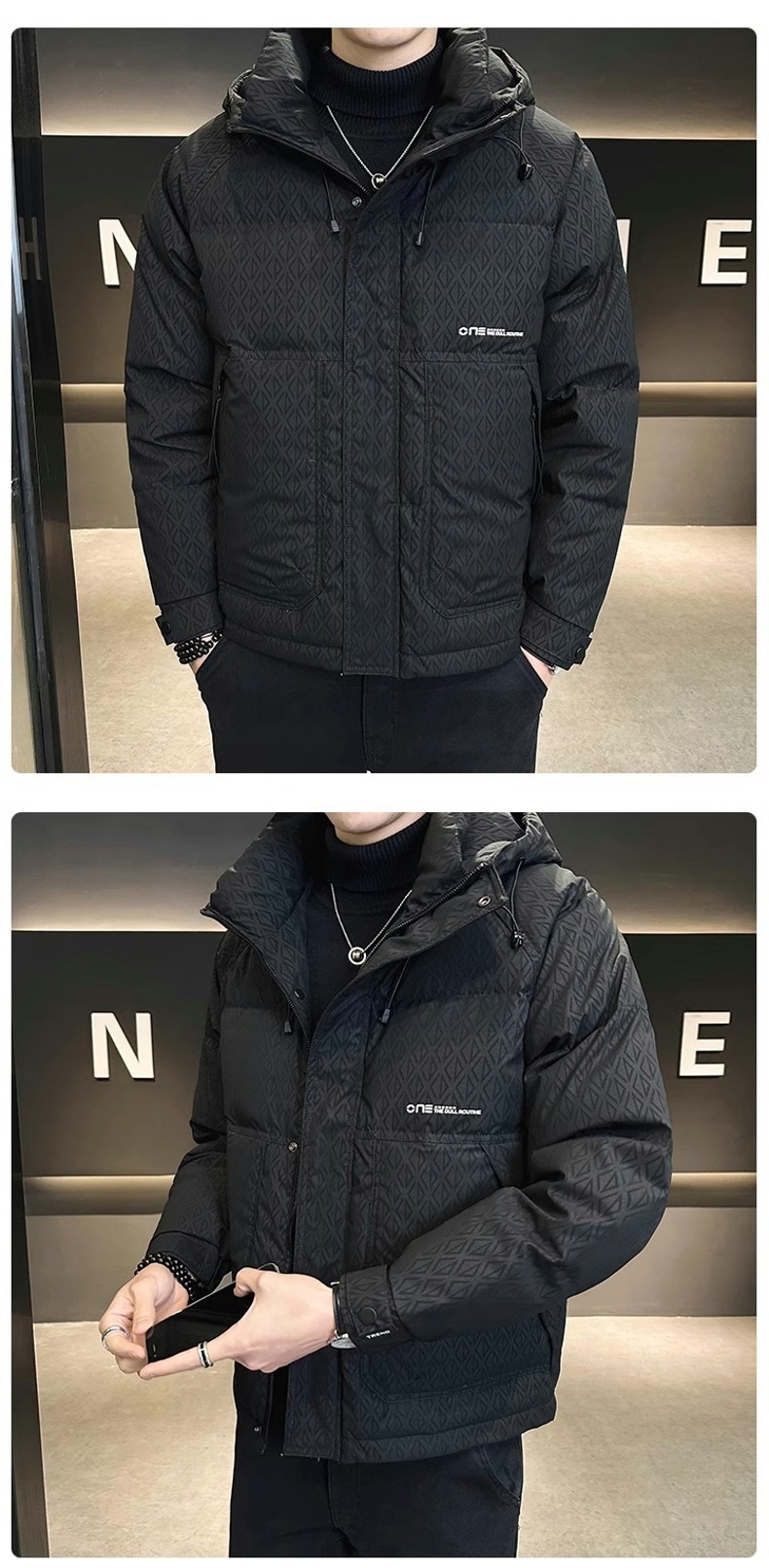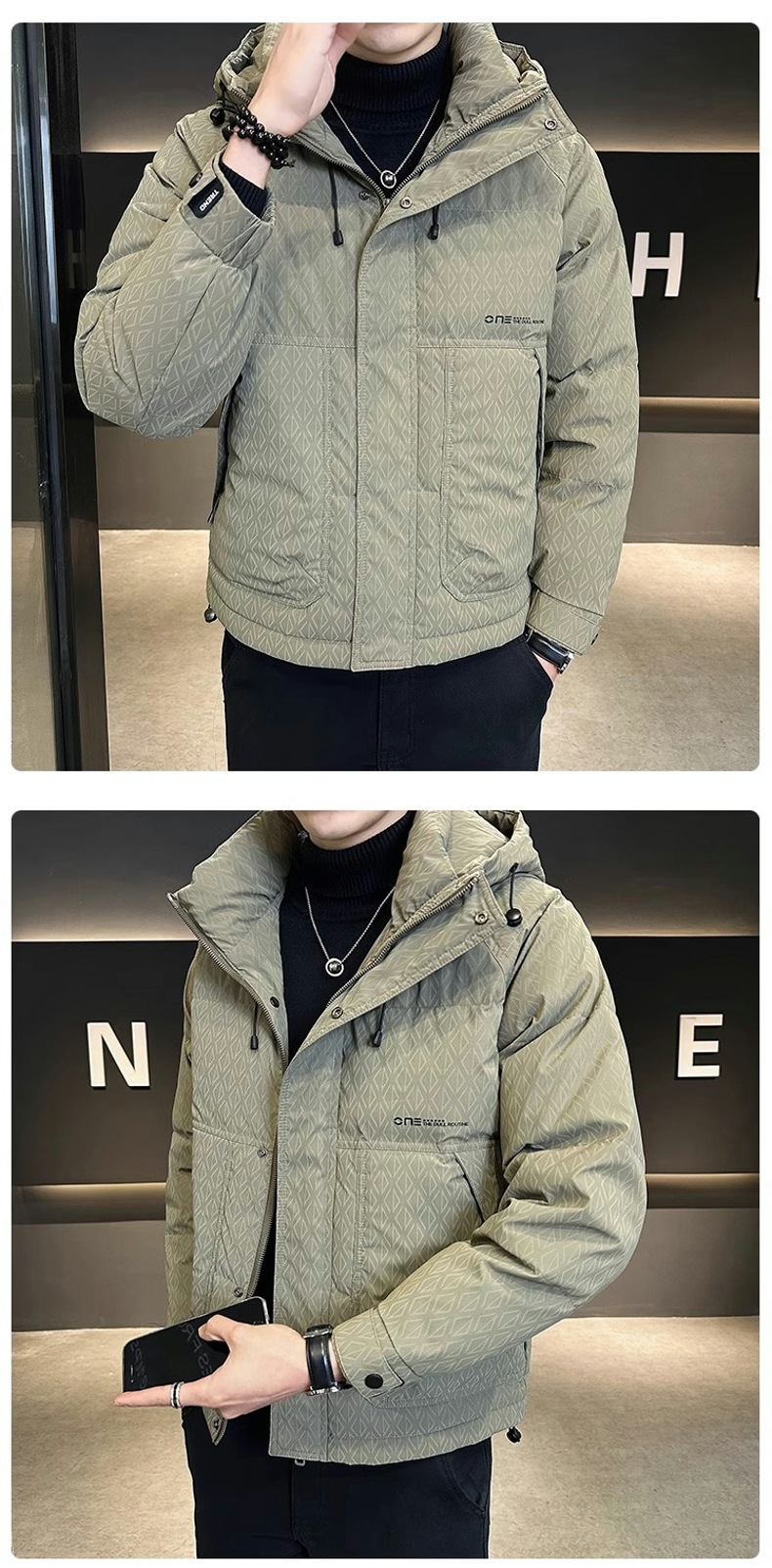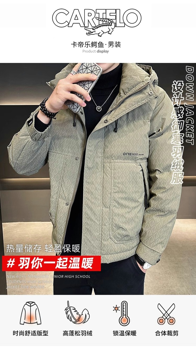 심장 악어 다운 재킷 남자의 2024 새로운 겨울 한국 스타일 후드 프린트 화이트 오리 다운 재킷 남성복