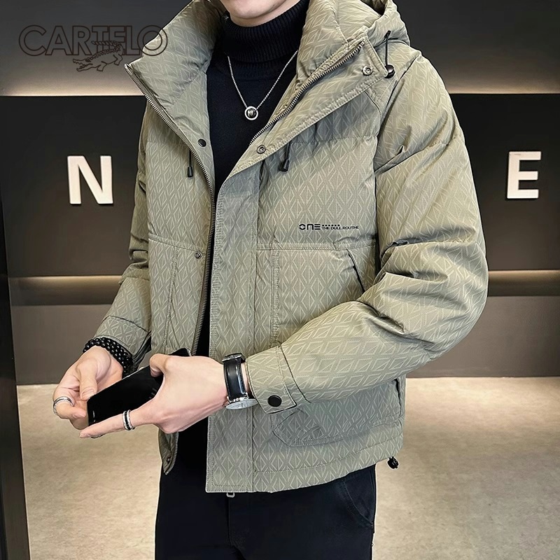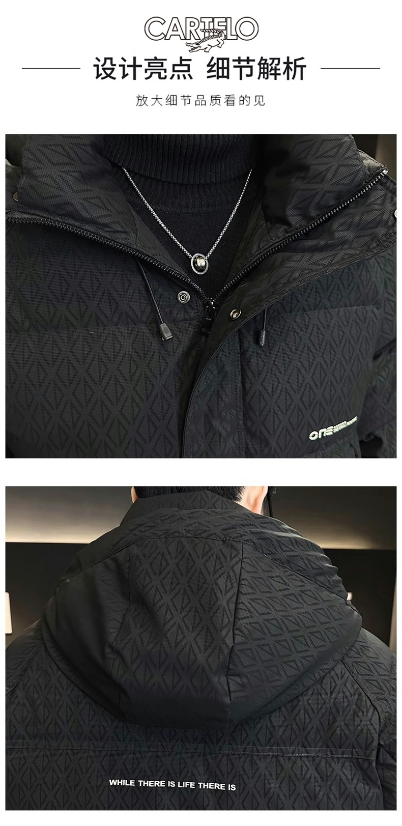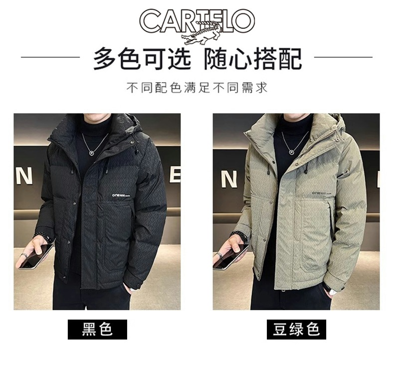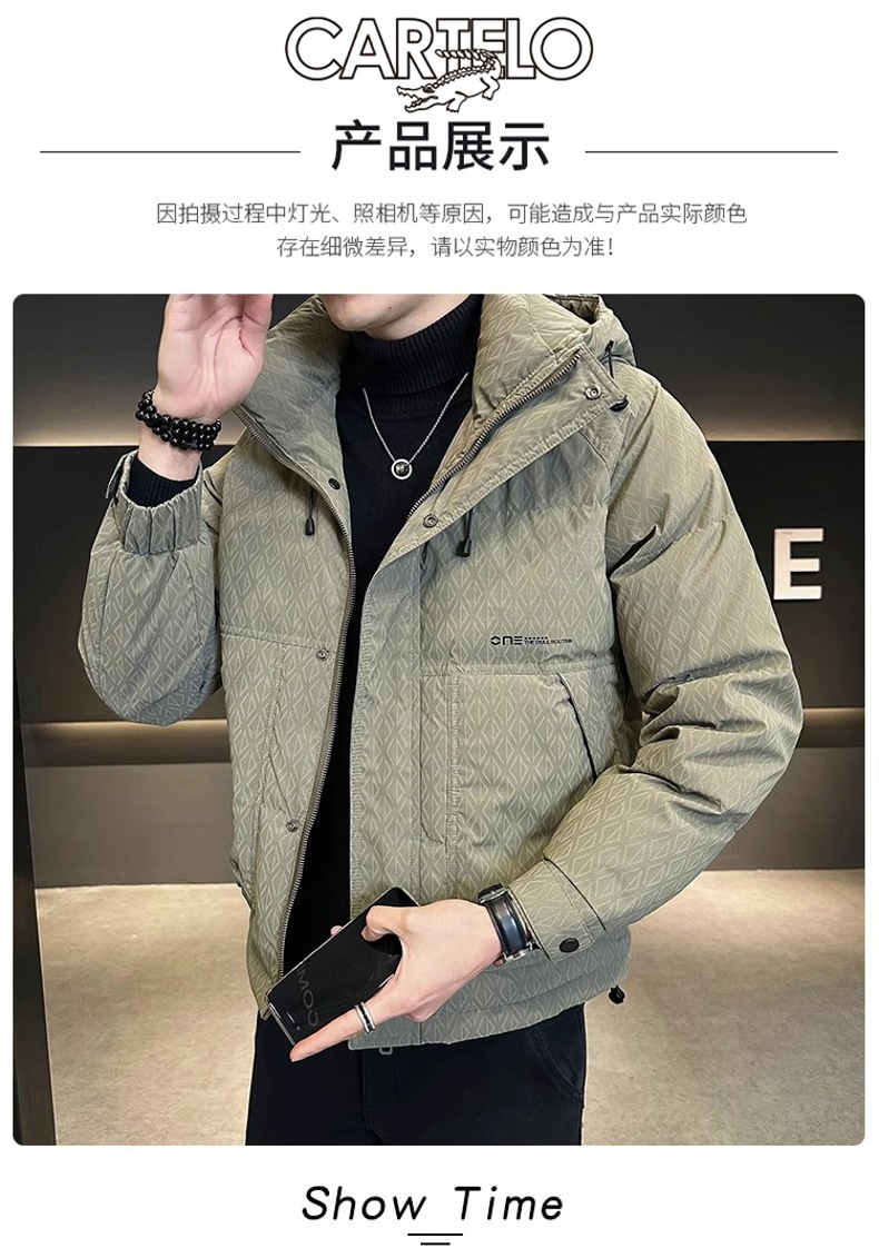 심장 악어 다운 재킷 남자의 2024 새로운 겨울 한국 스타일 후드 프린트 화이트 오리 다운 재킷 남성복