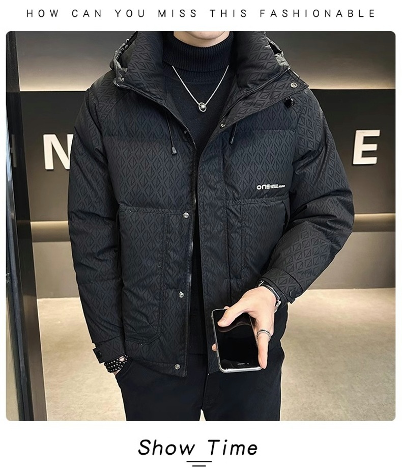 심장 악어 다운 재킷 남자의 2024 새로운 겨울 한국 스타일 후드 프린트 화이트 오리 다운 재킷 남성복스토어 가기