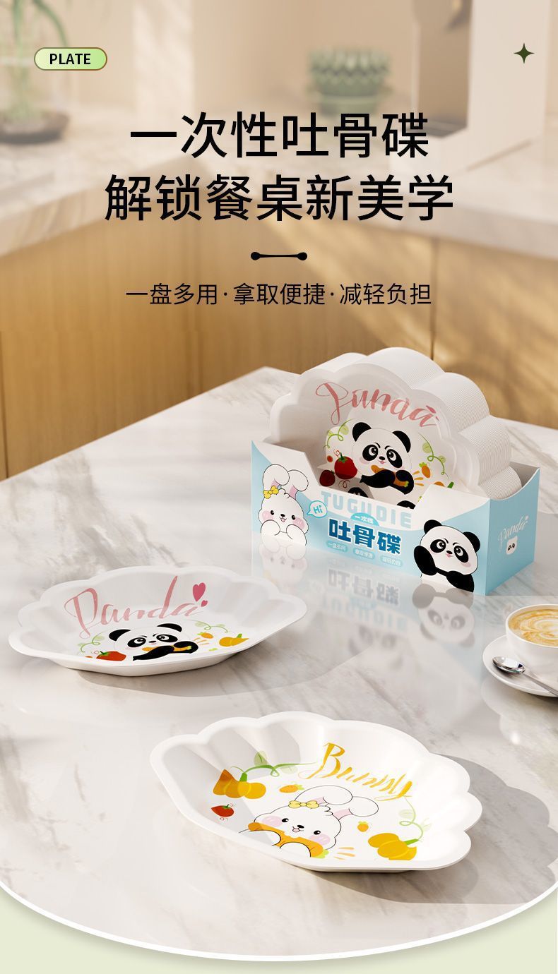 만화 뼈 장식 접시 일회용 접시 두꺼운 가정용 종이 접시 식기 종이 접시 케이크 캔디 플레이트 일회용 과일 플레이트스토어 가기