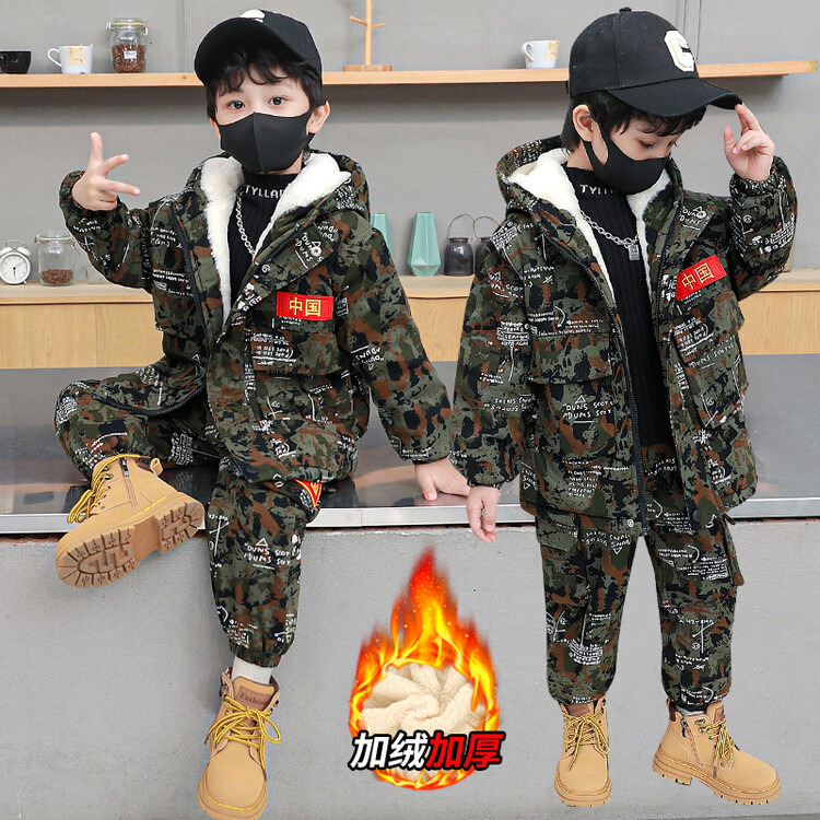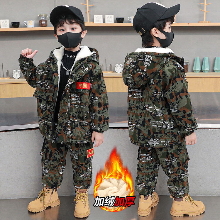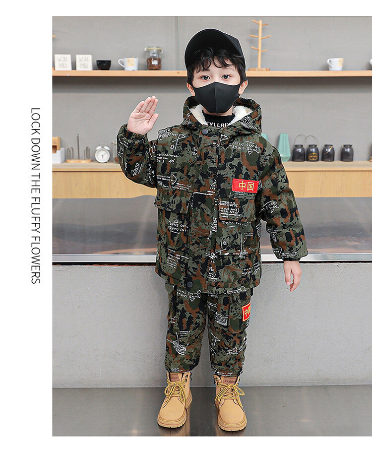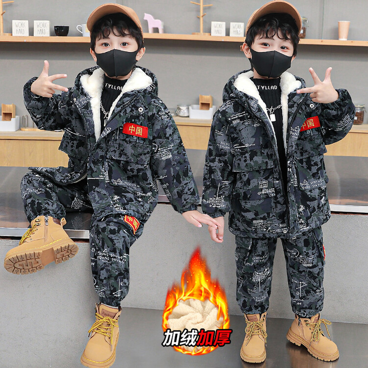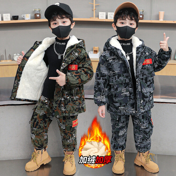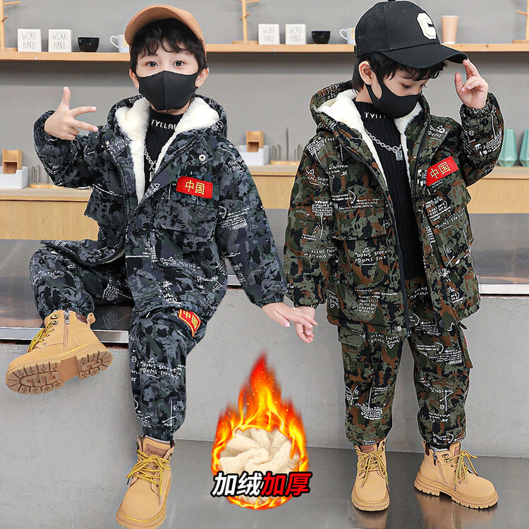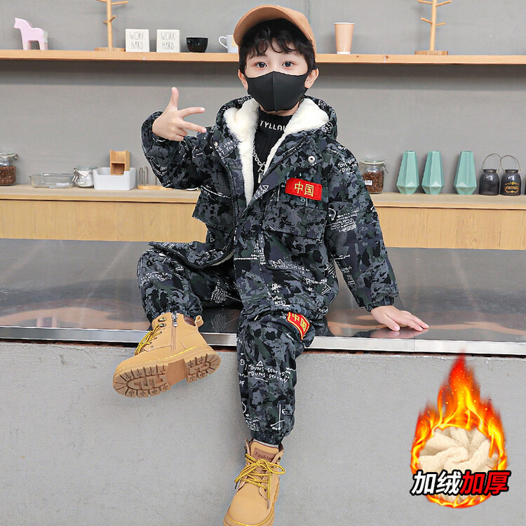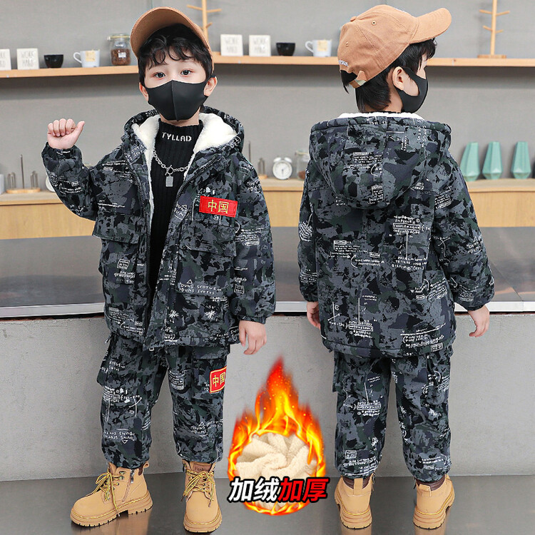 겨울 어린이 따뜻한 면 투피스 세트 어린이 대외 무역 옷을 세트 소년 중국 위장 기모스토어 가기
