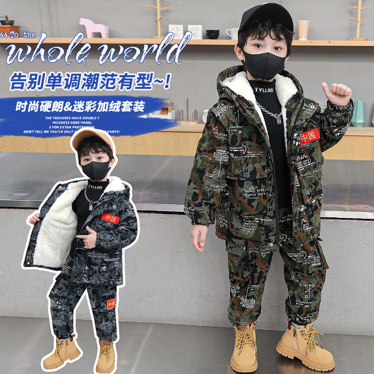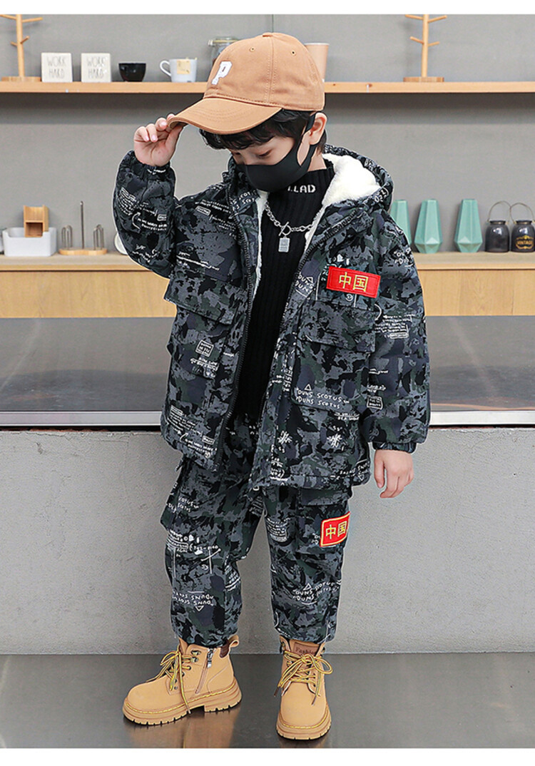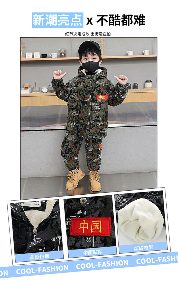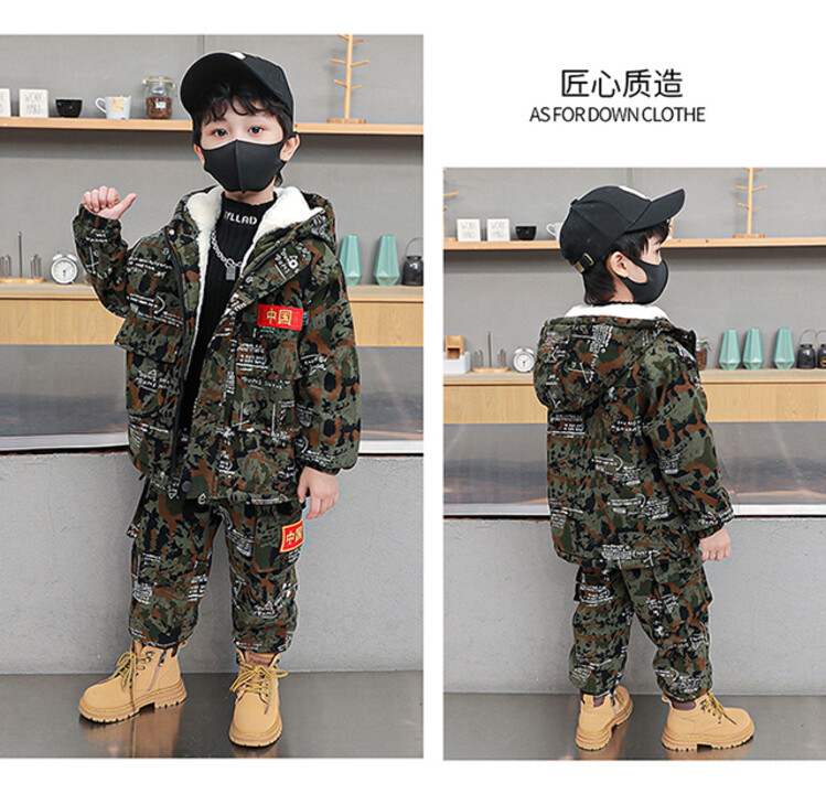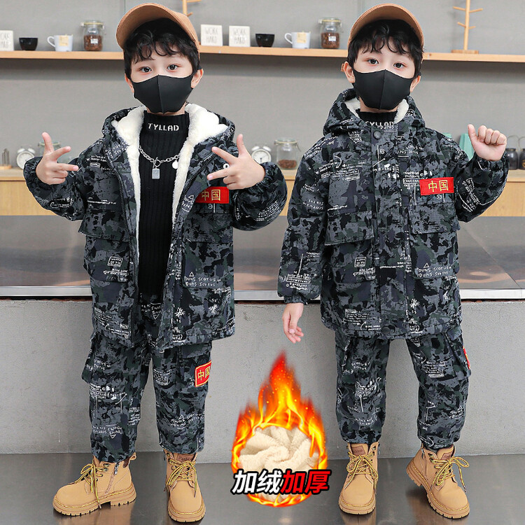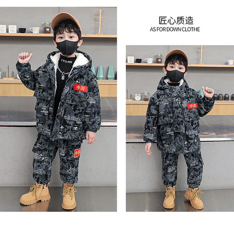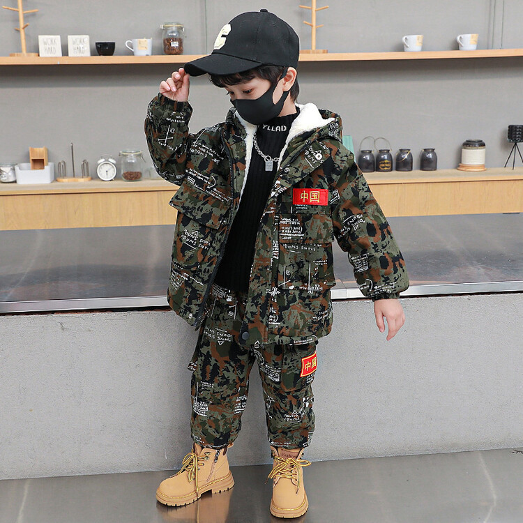 겨울 어린이 따뜻한 면 투피스 세트 어린이 대외 무역 옷을 세트 소년 중국 위장 기모스토어 가기