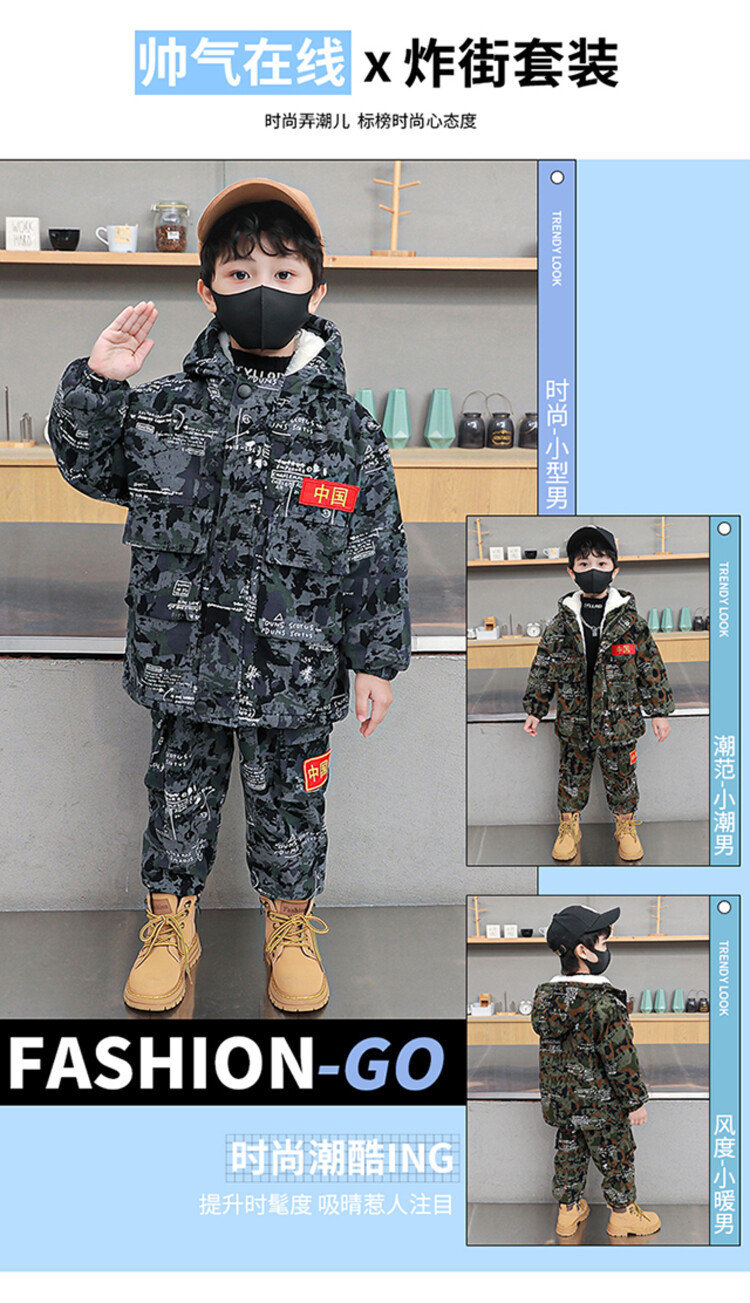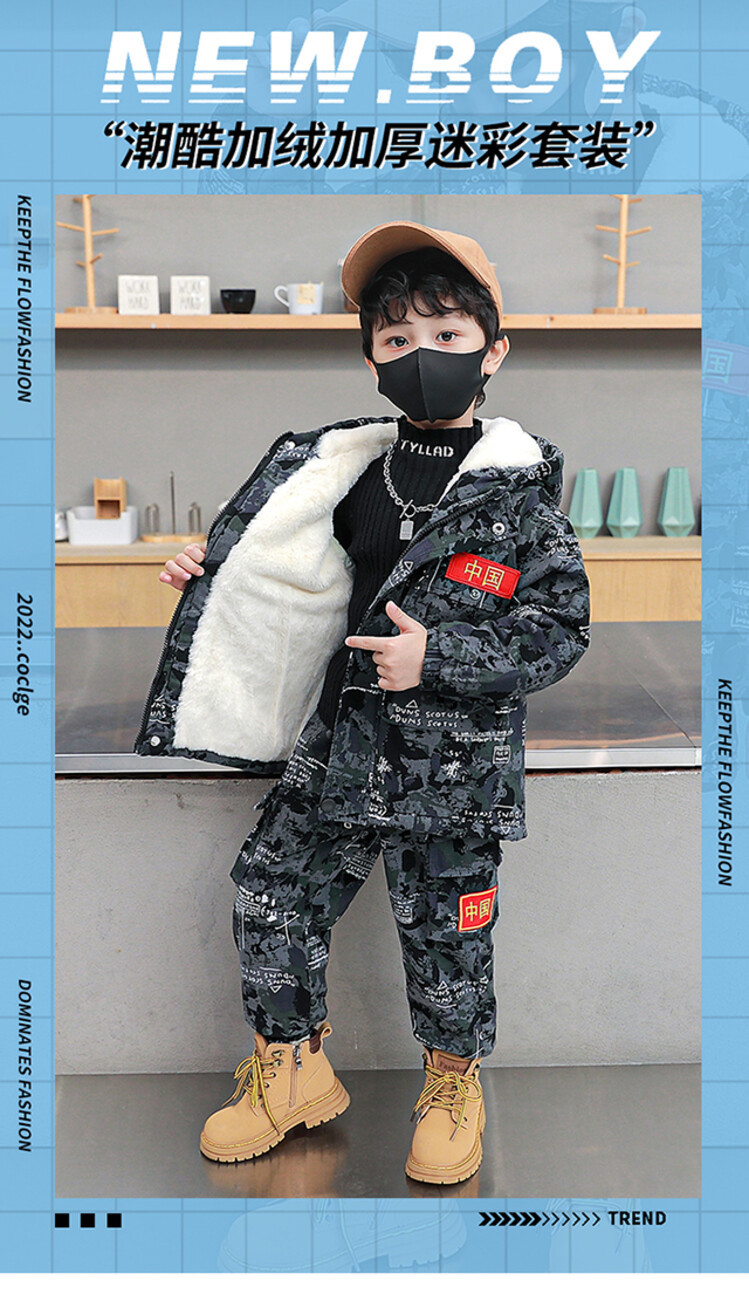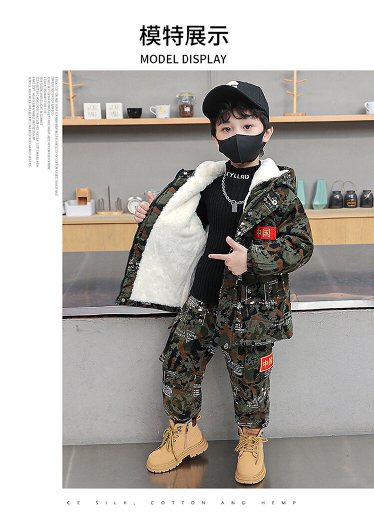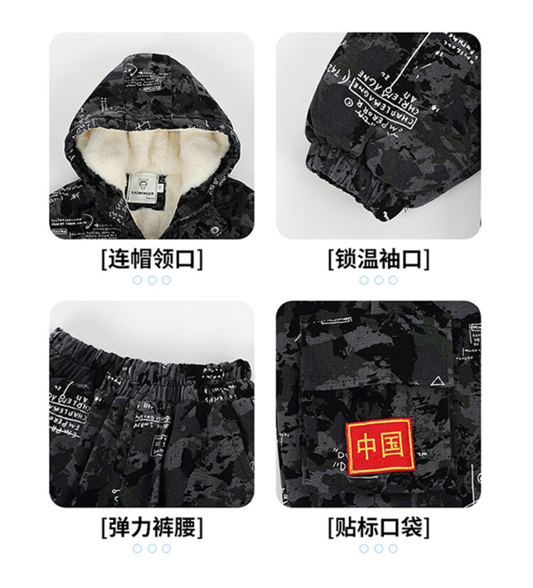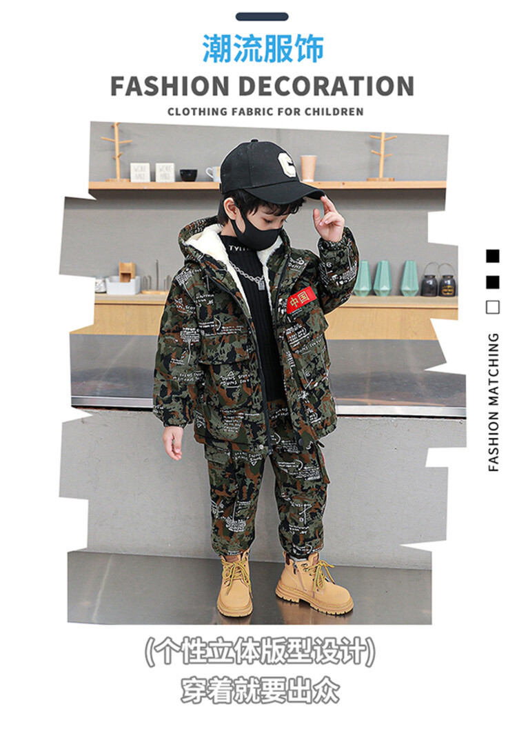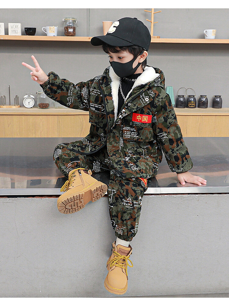 겨울 어린이 따뜻한 면 투피스 세트 어린이 대외 무역 옷을 세트 소년 중국 위장 기모스토어 가기