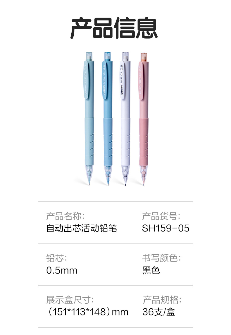 델리 자동 연필 SH159 학생들은 0.5/0.7 을 사용하여 활성 펜을 누르고 지우개로 자동 펜을 깨는 것은 쉽지 않습니다.스토어 가기