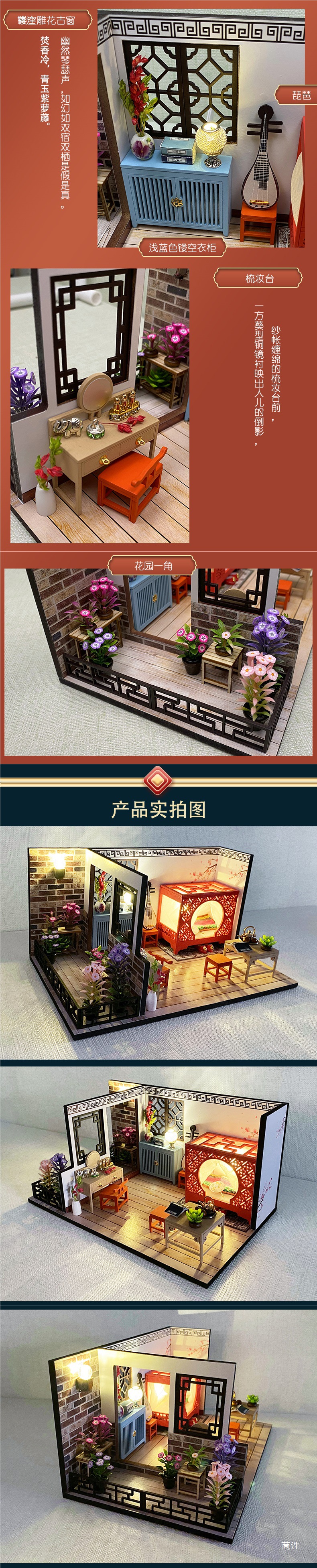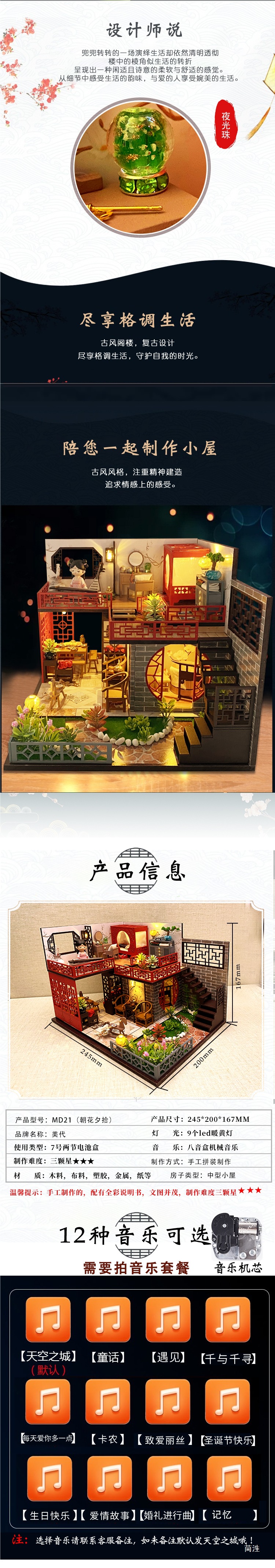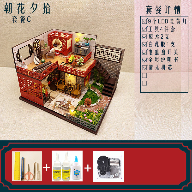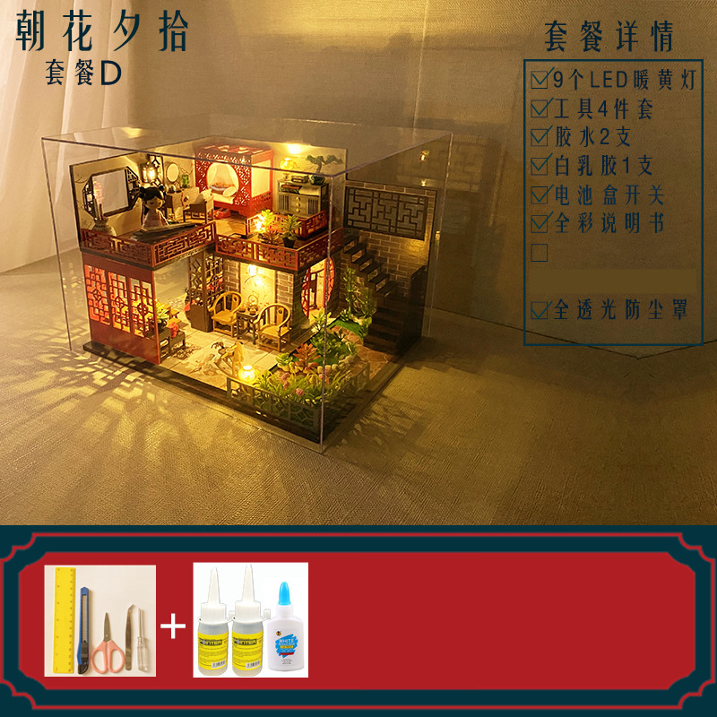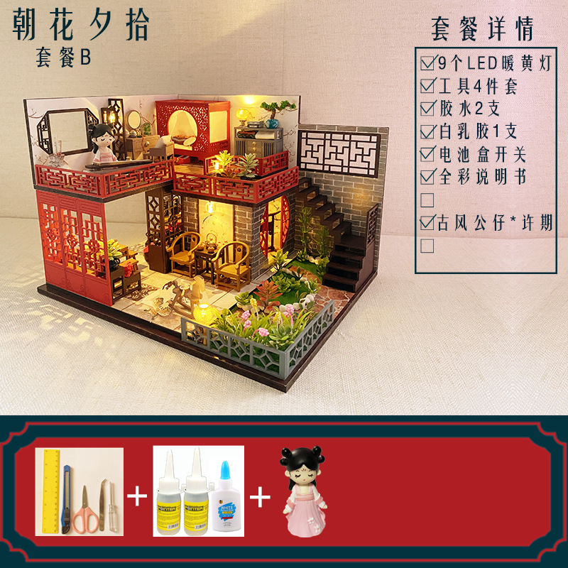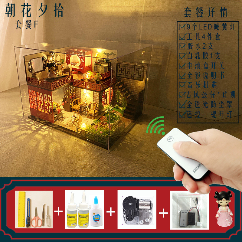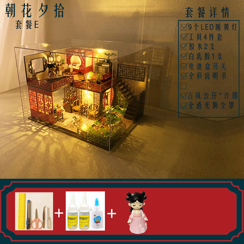• 아침 저녁 꽃 따기 도구 접착제 + 램프 + 먼지 커버 + 음악 + 고대 스타일 인형