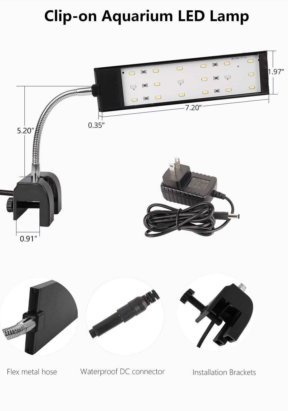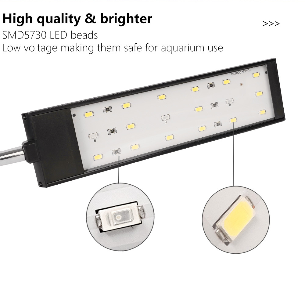 高亮度鱼缸夹灯 万向调节珊瑚灯 日光氛围照明灯 补光透亮水草灯