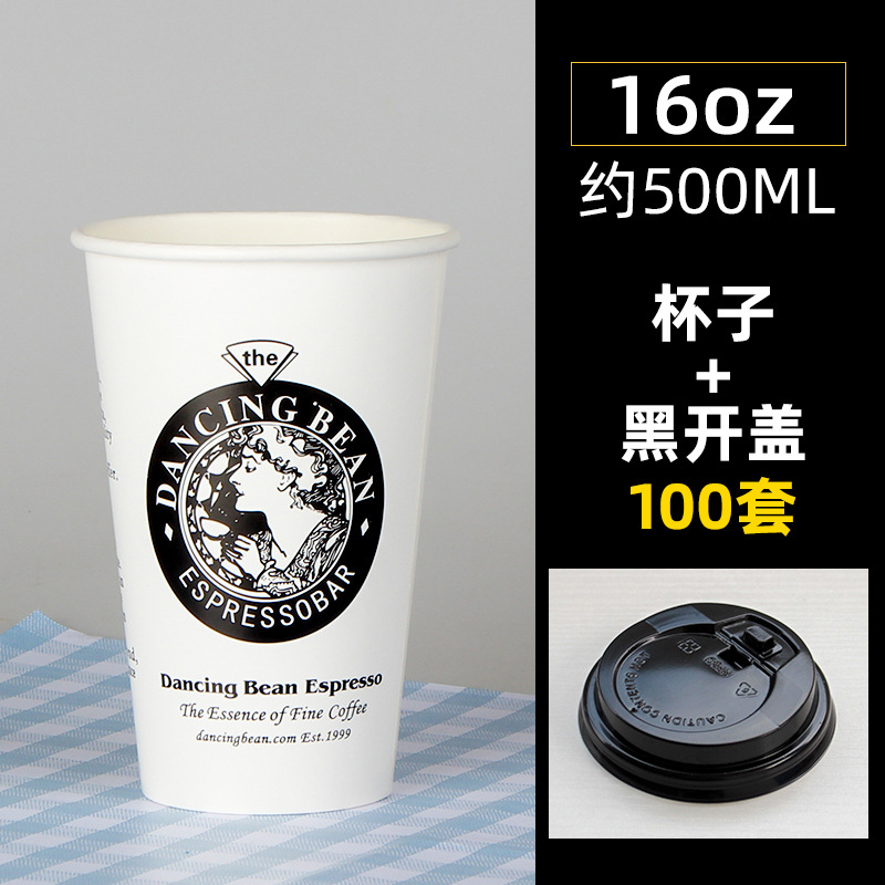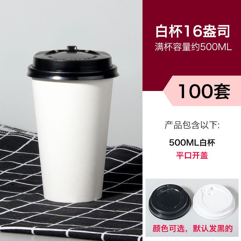 • 16온스 흰색 판지 컵 + 오픈 뚜껑 100세트