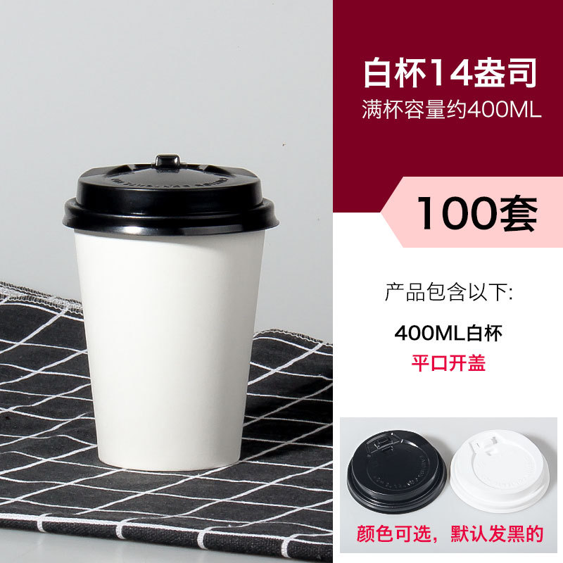 • 14온스 흰색 판지 컵 + 오픈 뚜껑 100세트