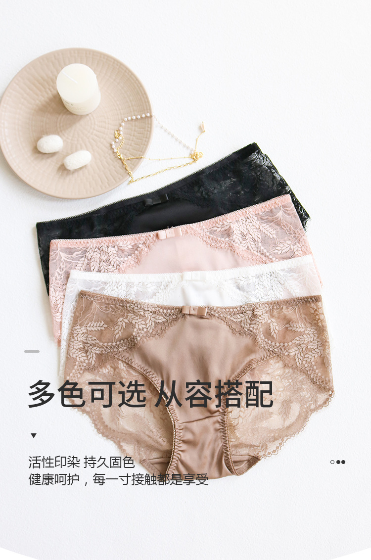 과일 사랑 실크 섹시한 레이스 중간 허리 여성 속옷 뽕나무 실크 느슨한 통기성 엉덩이 삼각형 반바지스토어 가기