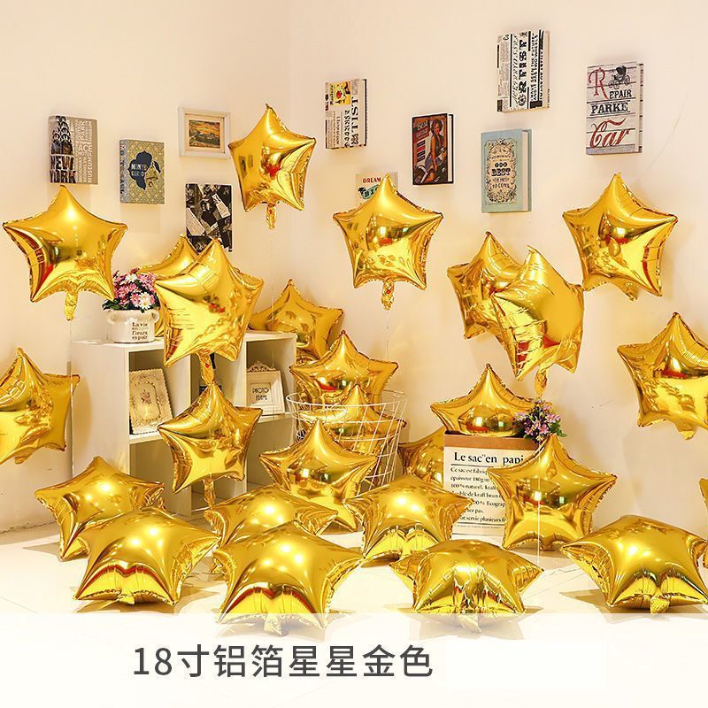 • 오각별[골드] 단색-단일 풍선[프리 리본] 20개