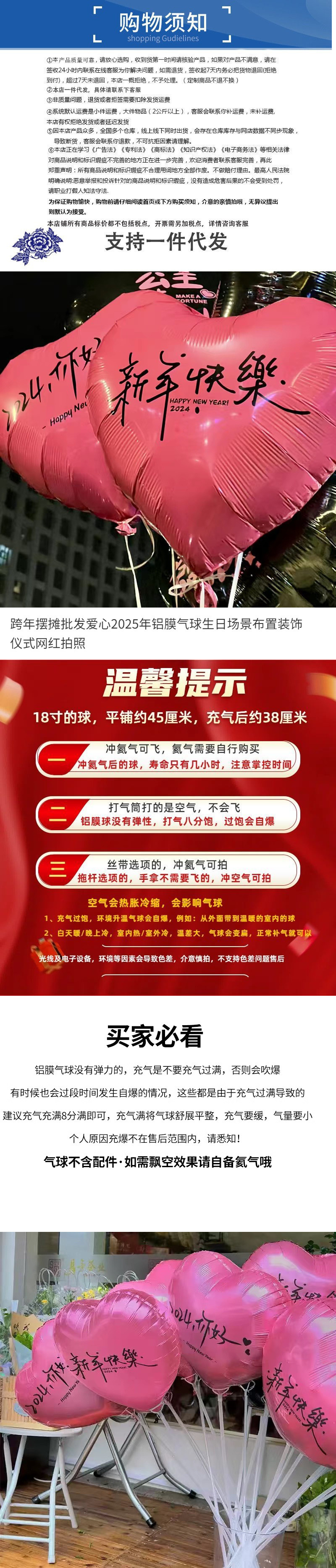 새해 포장 도매 사랑 2025 알루미늄 풍선 생일 장면 레이아웃 장식 의식 그물 빨간 사진스토어 가기