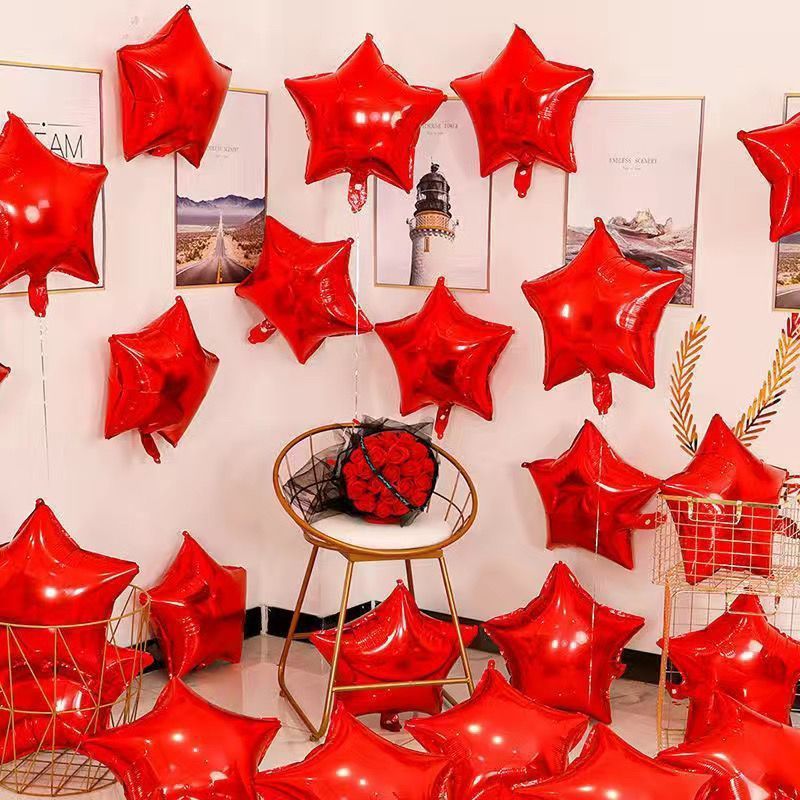 • 오각별[빨간색] 단색-단일 풍선[프리 리본] 20개