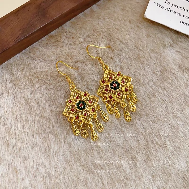 중간 고대 빈티지 다이아몬드 꽃 술 귀 후크 레트로 니치 코트 스타일 귀걸이 가벼운 고급 고급 고급 귀걸이