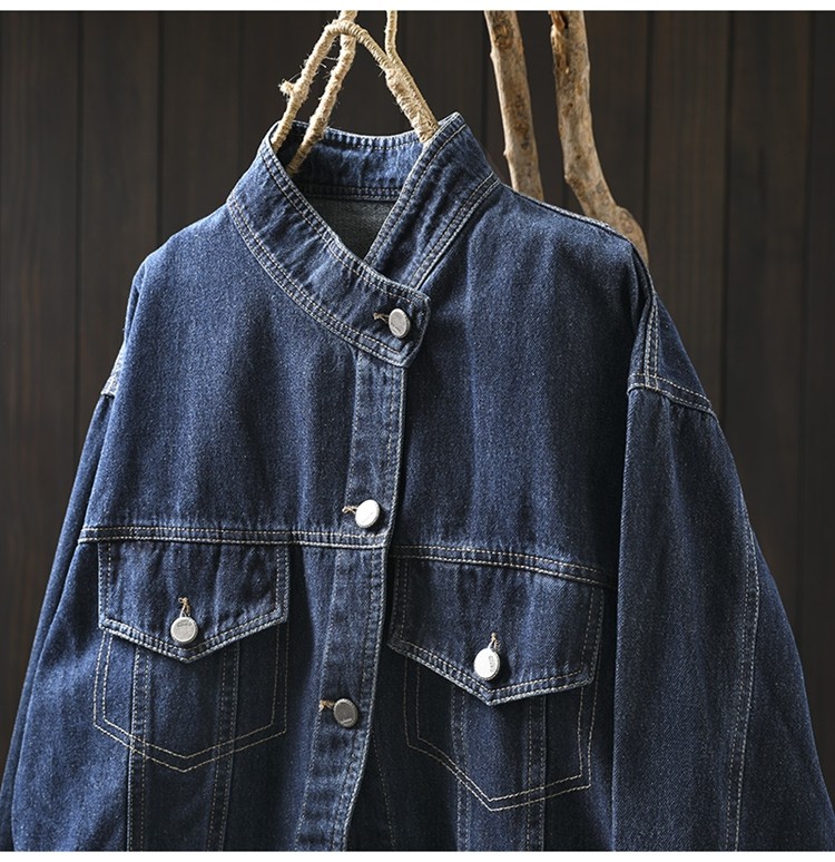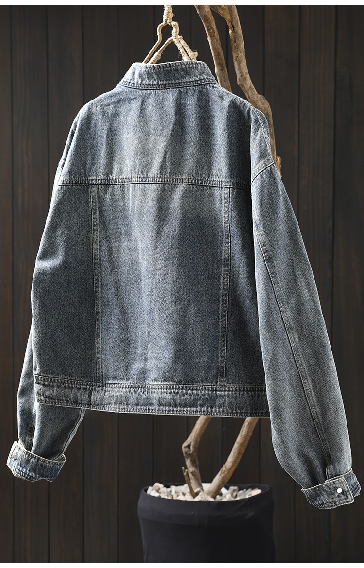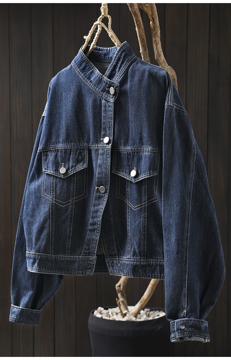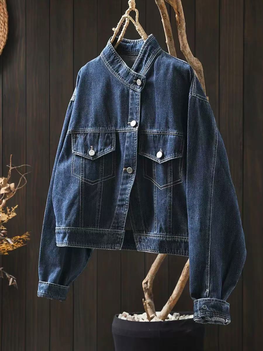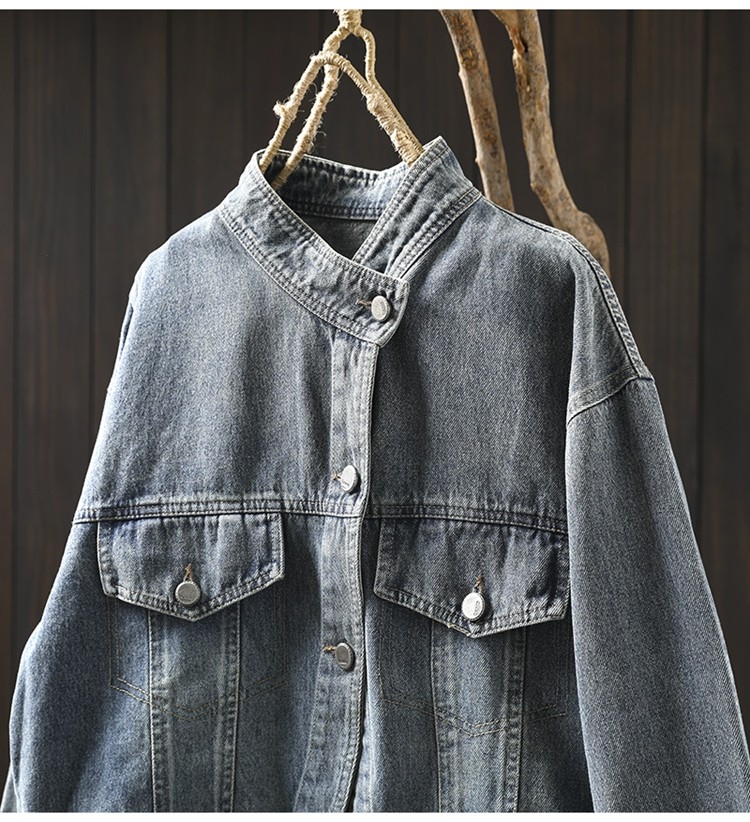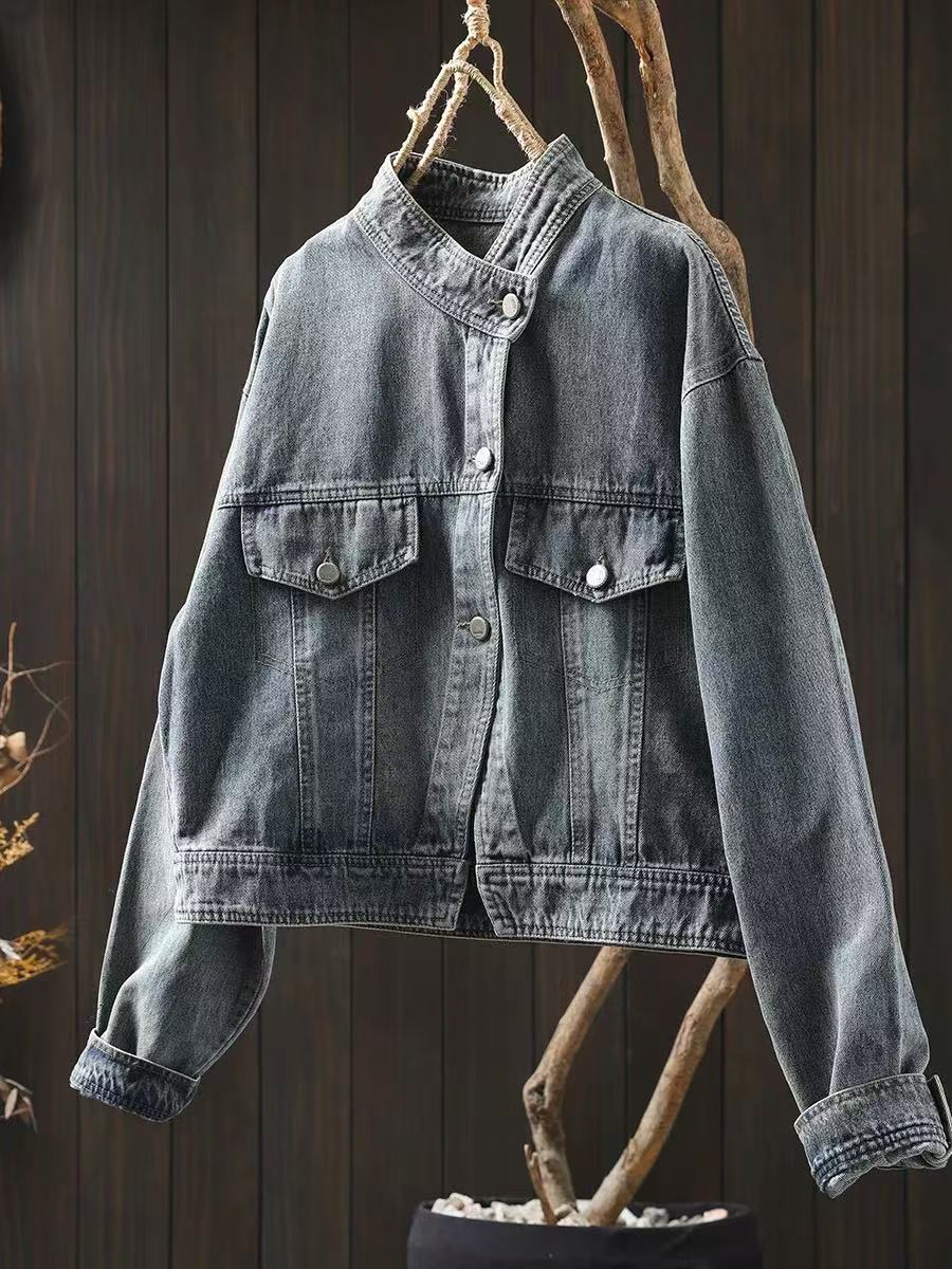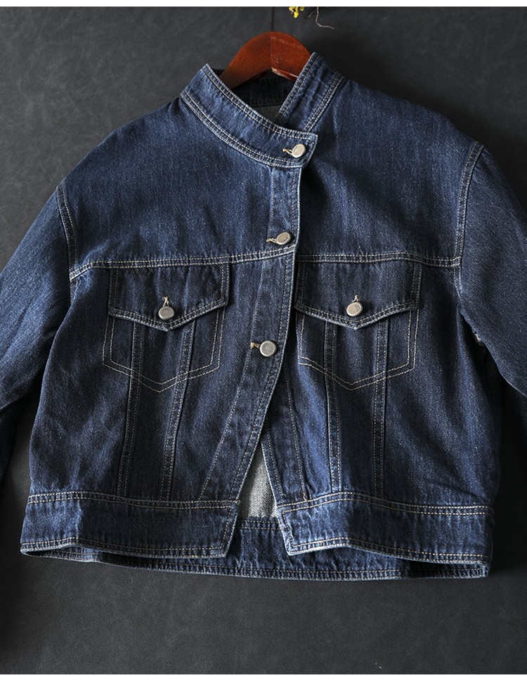 봄 새로운 수직 칼라 데님 코트 여성의 짧은 서양 스타일 느슨한 홍콩 스타일 3033스토어 가기