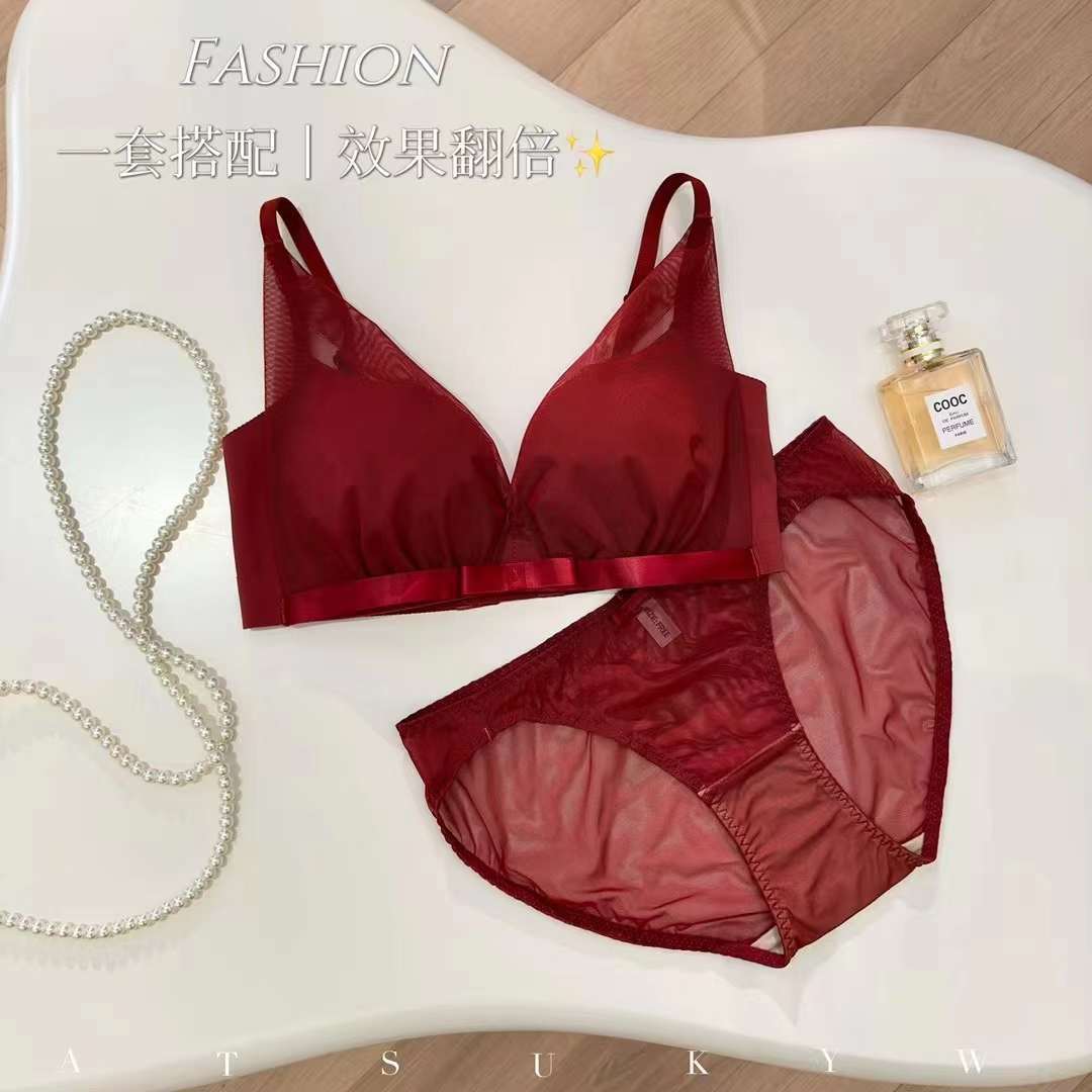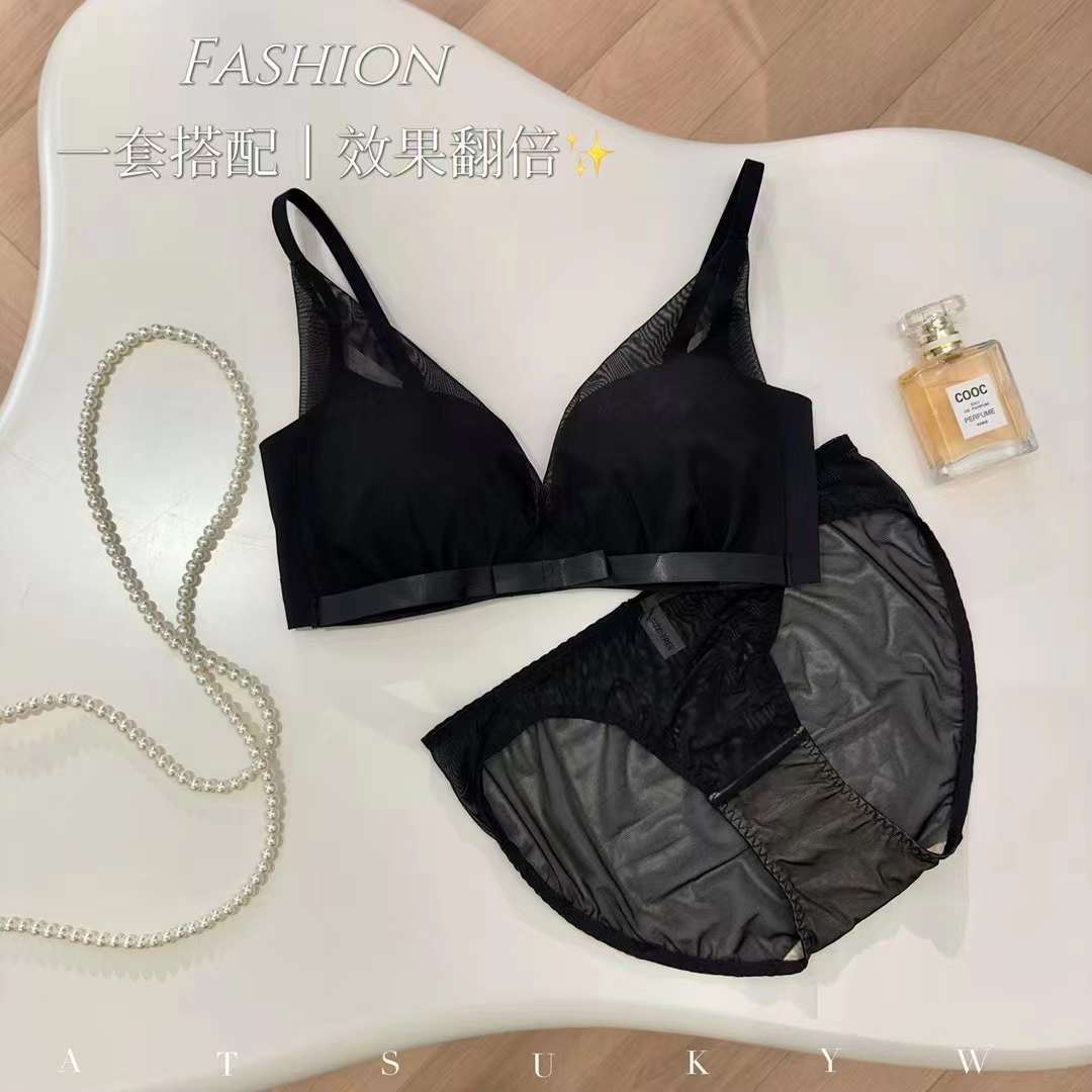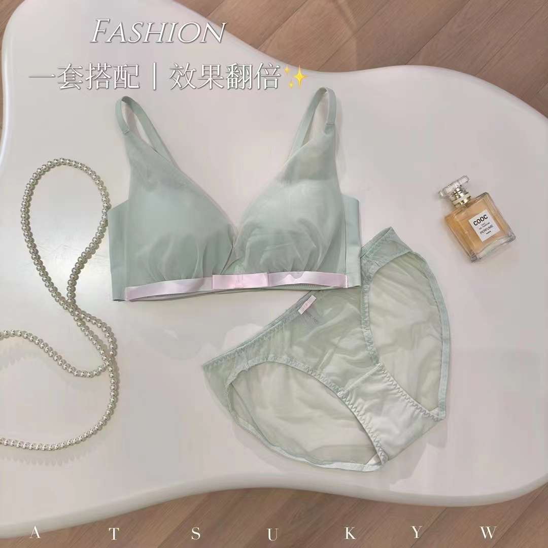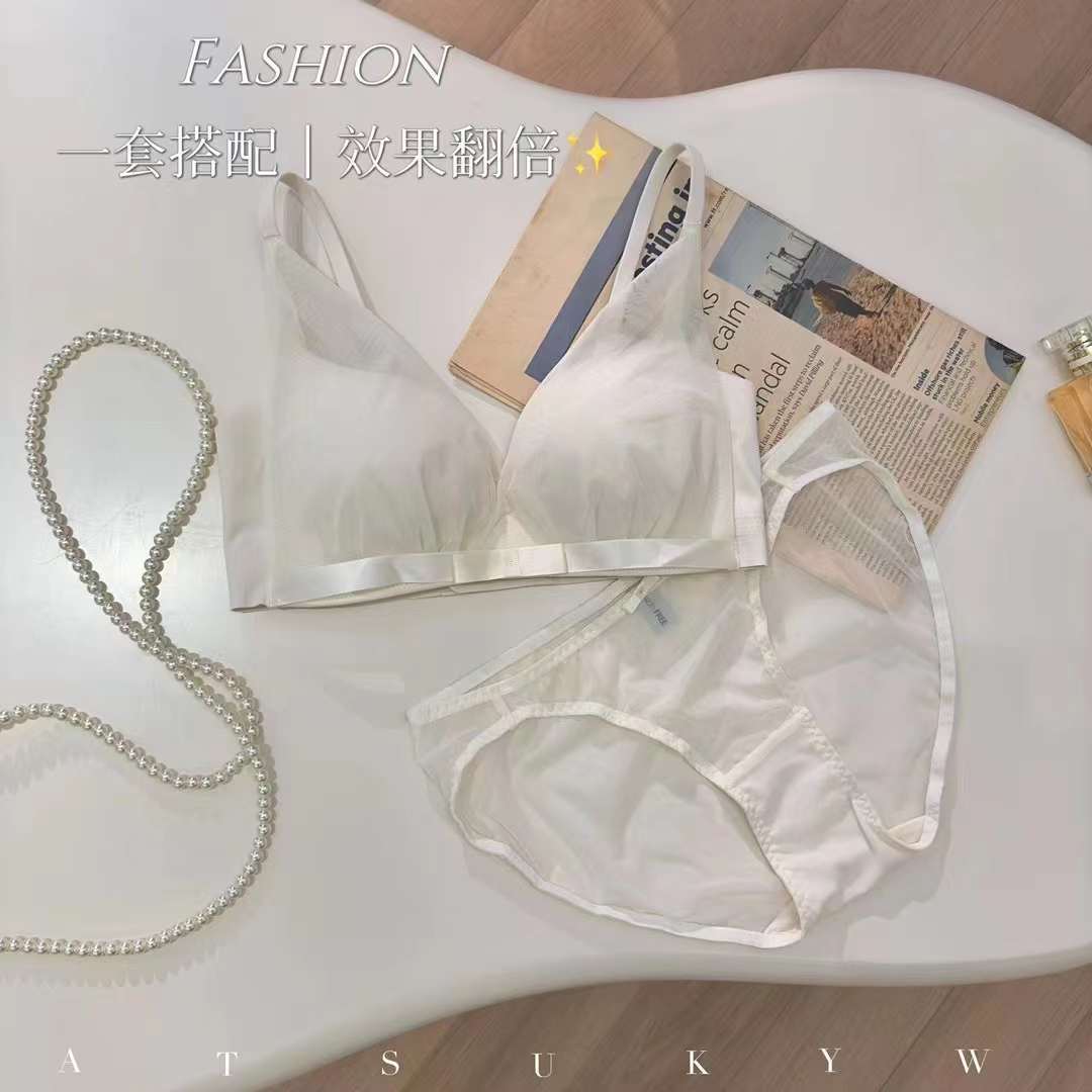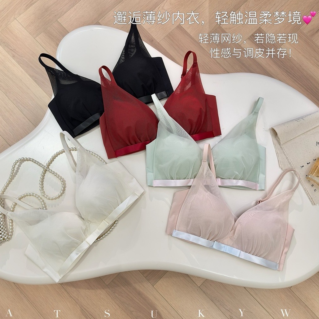 夏日甜仙纯欲小胸bra!薄透网纱三角杯文胸桑蚕丝真丝内衣舒适