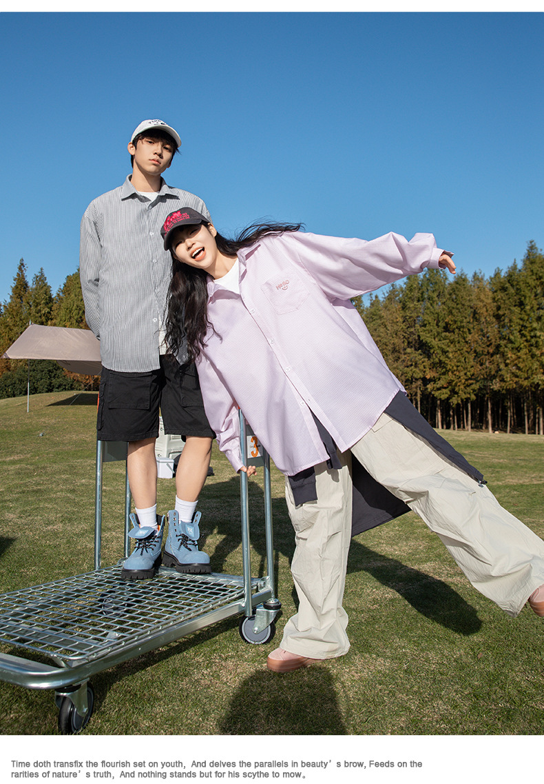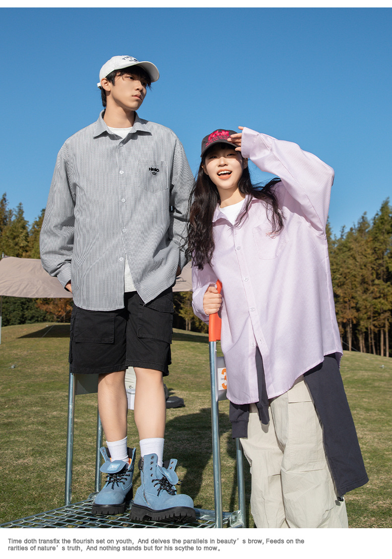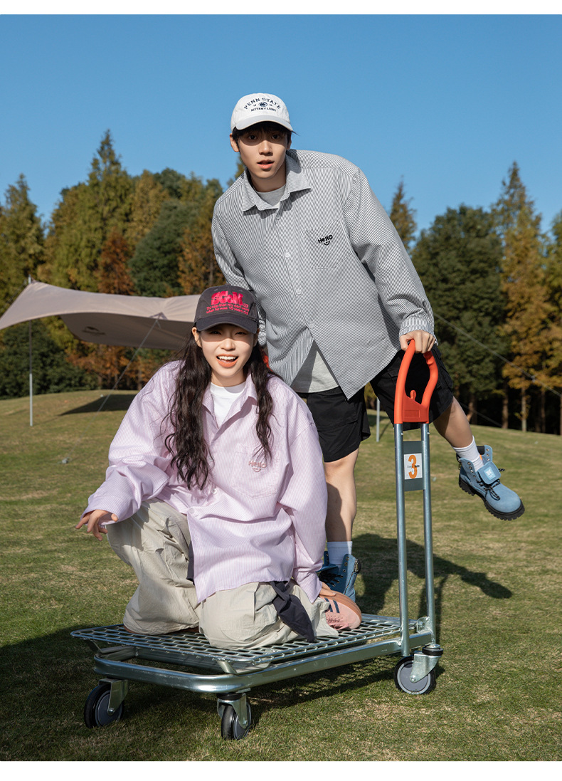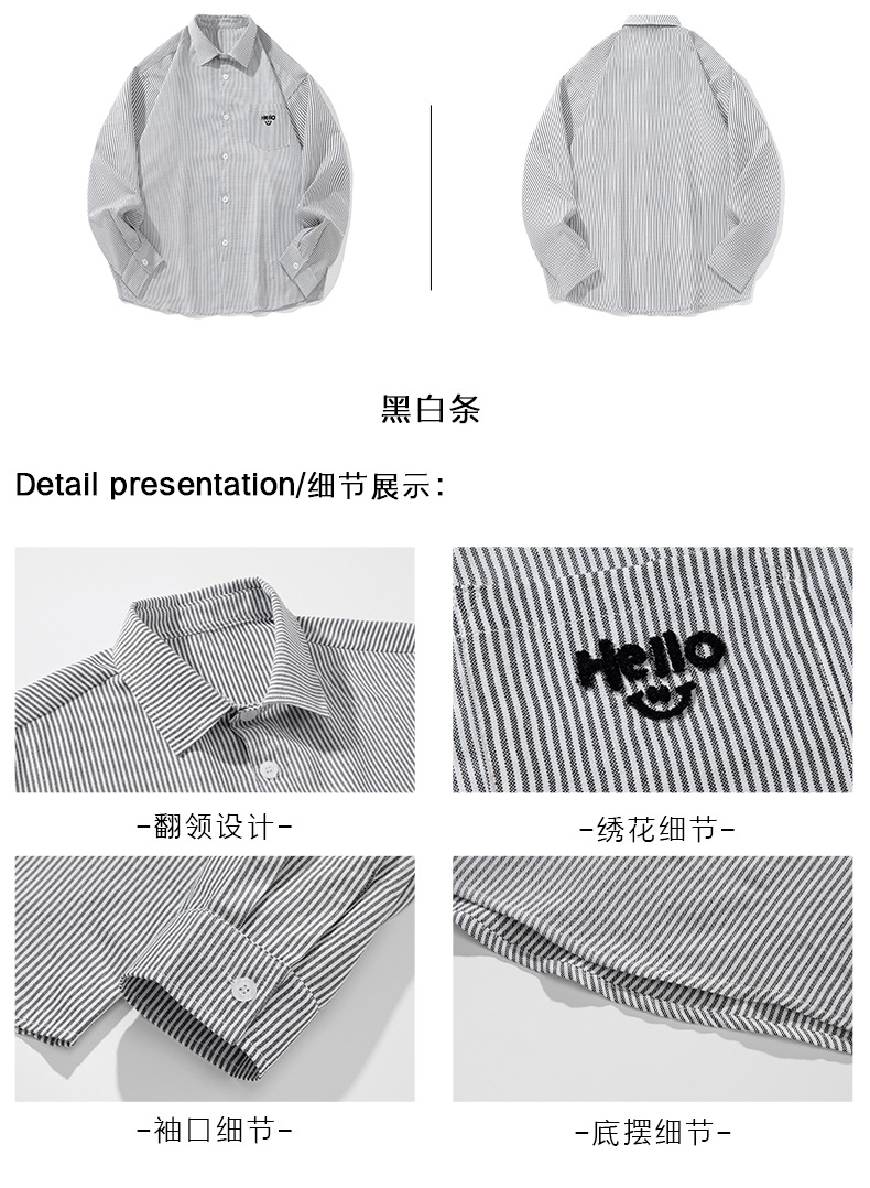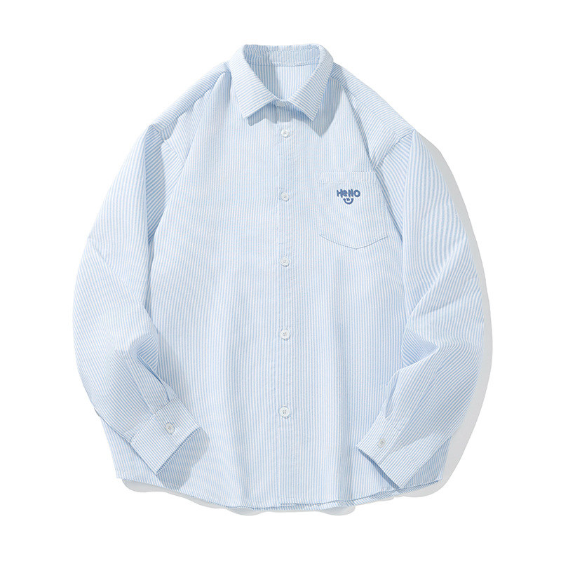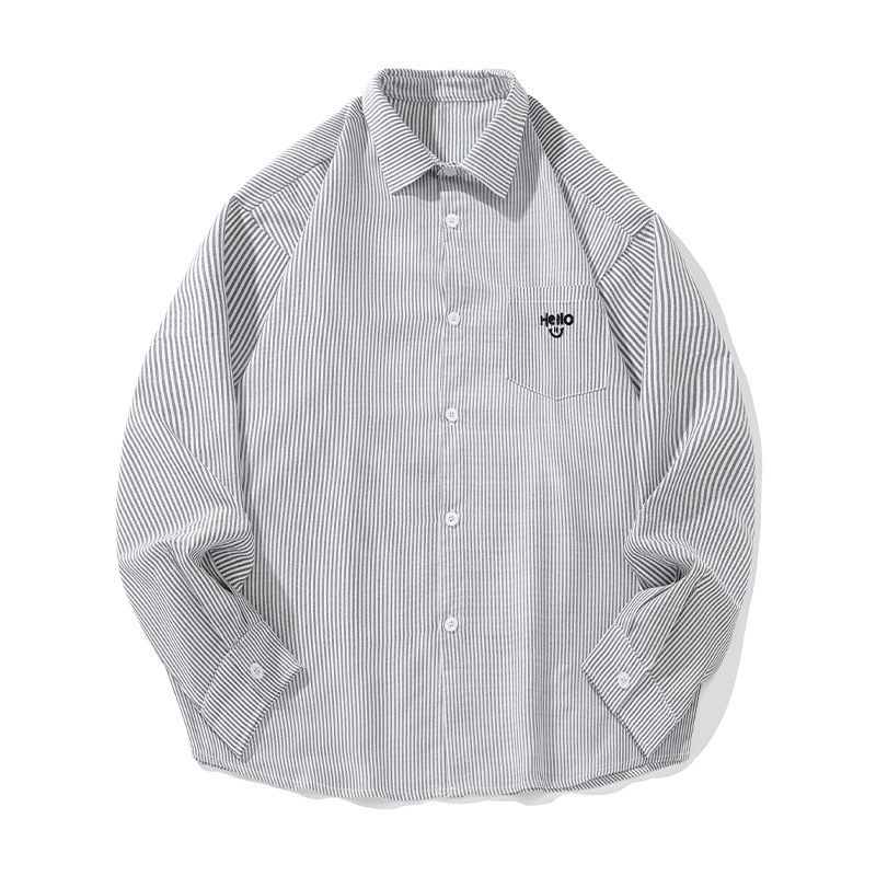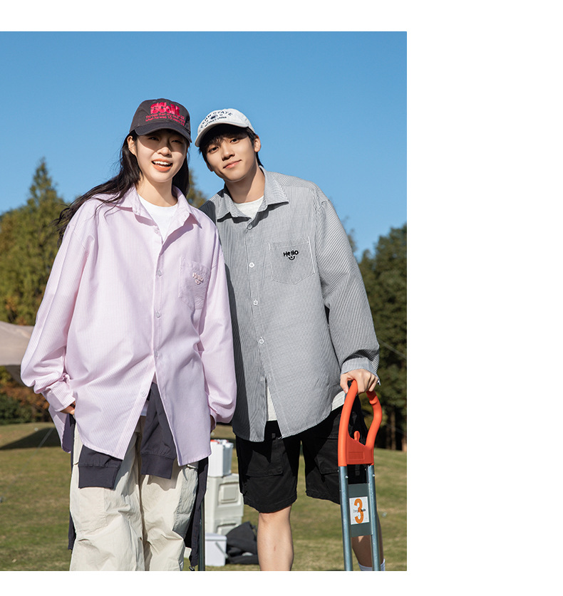 미국 레트로 스타일 캐주얼 긴팔 셔츠 남성용 스트라이프 배색 디자인 포켓 루즈핏 셔츠 입체 자수 자켓스토어 가기