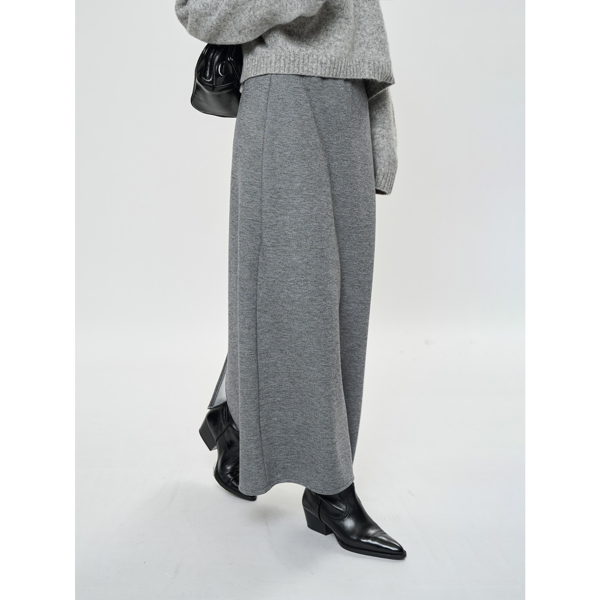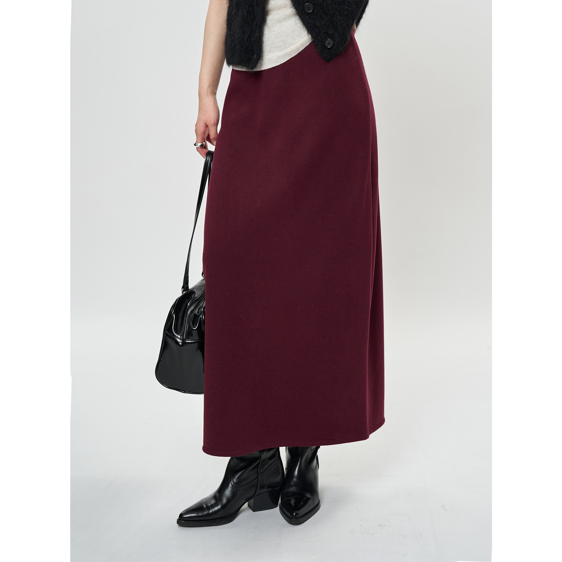 루푸 이른 봄 새로운 한국 스타일 우아한 한 단계 울 스커트 여성용 스트레치 슬림 핏 슬림 룩 캐주얼 롱 스커트