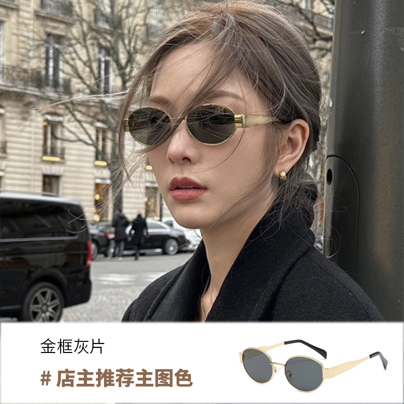 타원형 선글라스 여성의 하이 엔드 센스 메탈 Triumphal Arc 선글라스 작은 프레임 레트로 국경 간 사이버 연예인 스트리트 샷 선글라스스토어 가기