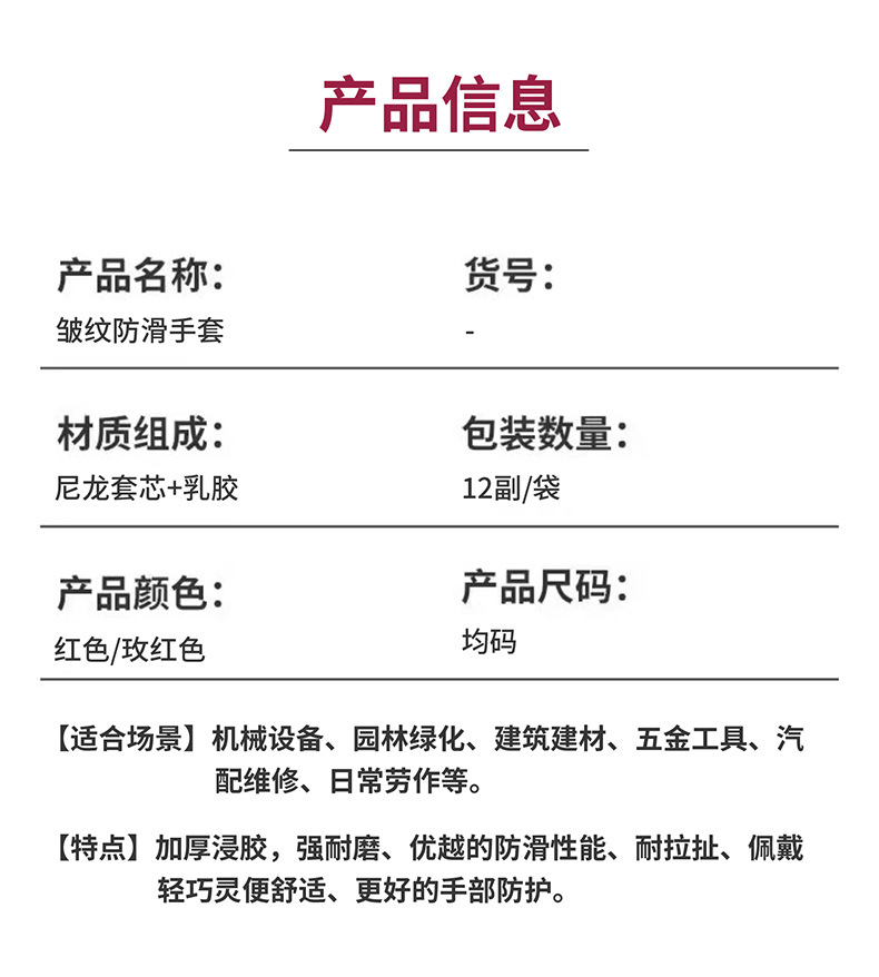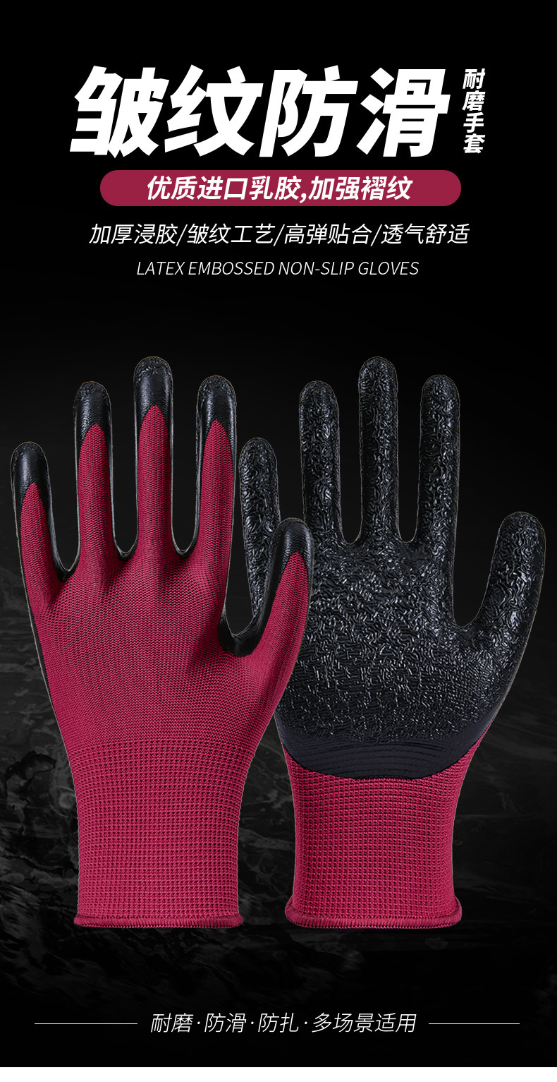 라텍스 주름 미끄럼 방지 장갑 두꺼운 마모 방지 미끄럼 방지 안전 보호 장갑 작업자 작업용 작업 장갑스토어 가기