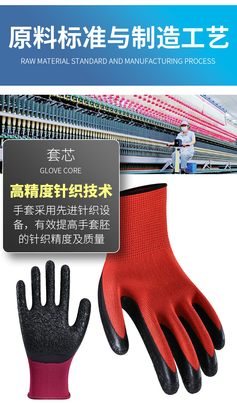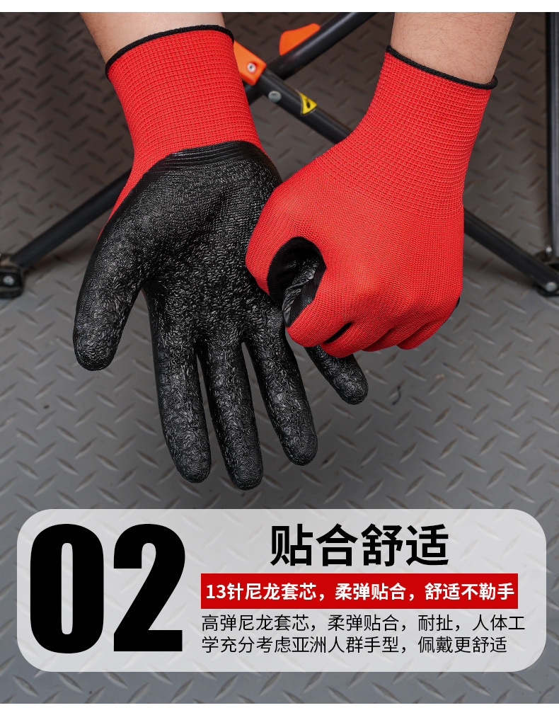 라텍스 주름 미끄럼 방지 장갑 두꺼운 마모 방지 미끄럼 방지 안전 보호 장갑 작업자 작업용 작업 장갑