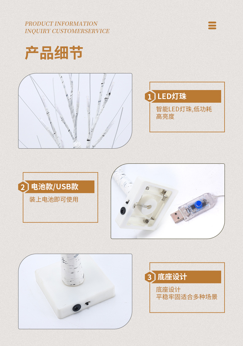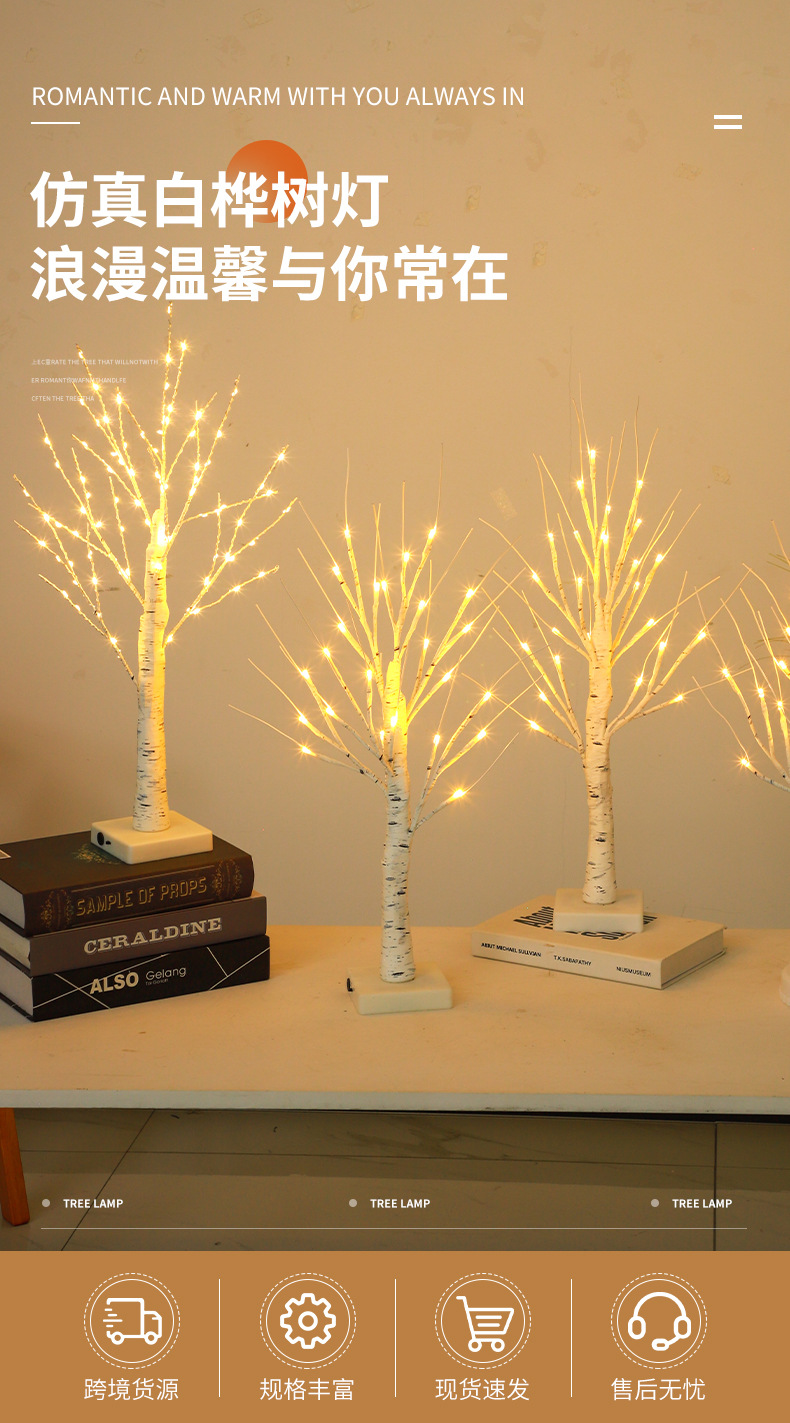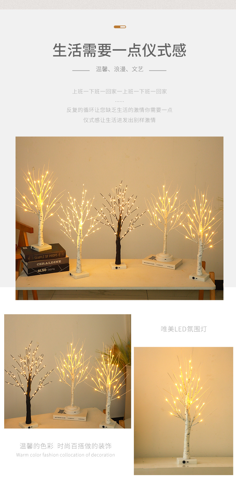 LED 자작나무 조명 크리스마스 파티 모조 나무 조명 침실 가정용 야간등 장식 장면 조명